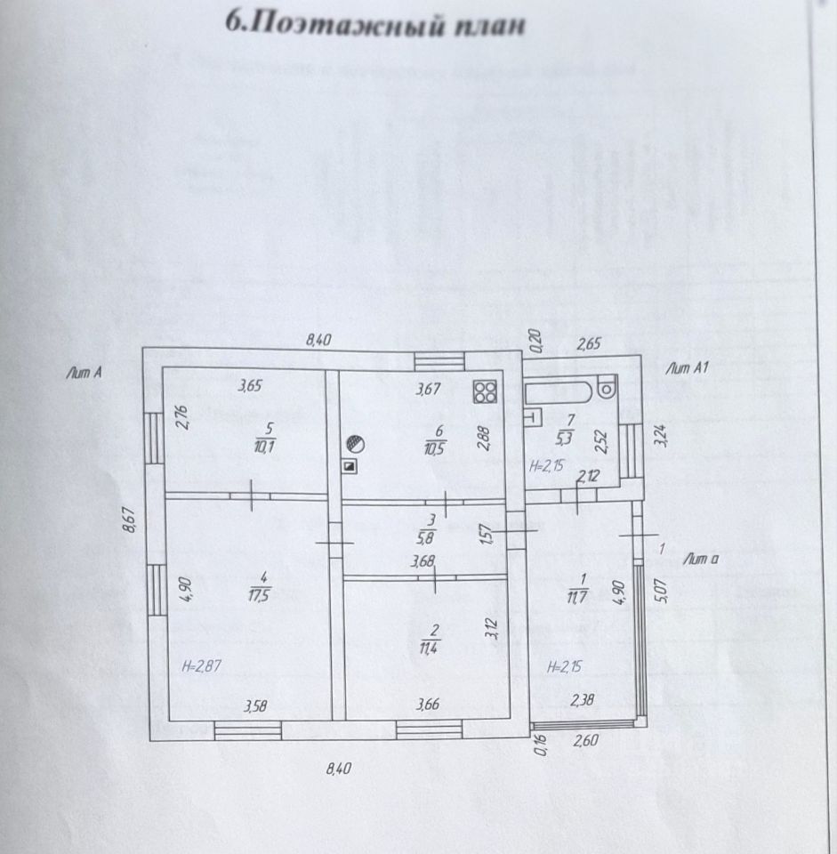 Дом одноэтажный, жилой площадью 60.6 м2 включает в себя 3 комнаты ( 17,5 м2+ 11.4 м2+ 10.5 м2), кухню 10.5 м2 и веранду 11.7 м2