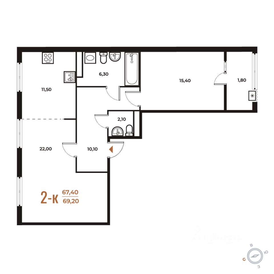 Продаётся 2-комнатная квартира в строящемся доме (Корпус 3), срок сдачи: I-кв. 2026, общей площадью 69.2 кв.м., на 5 этаже. Комплекс отдельно стоящих жилых корпусов с нежилыми помещениями и подземной автостоянкой.