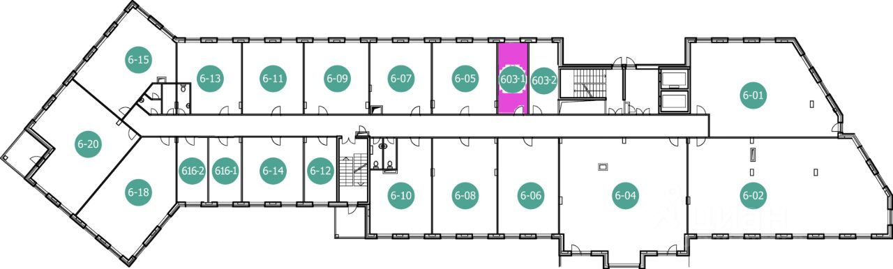 Офис 603-1 на 6-ом этаже 7-этажного корпуса в д.8 на генплане в Технопарке Лихачевский. Цена в т.ч. НДC 22%