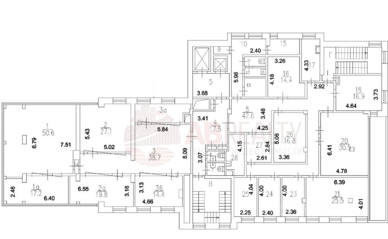 4 этаж. Офис 474 кв.м - кабинетная планировка.