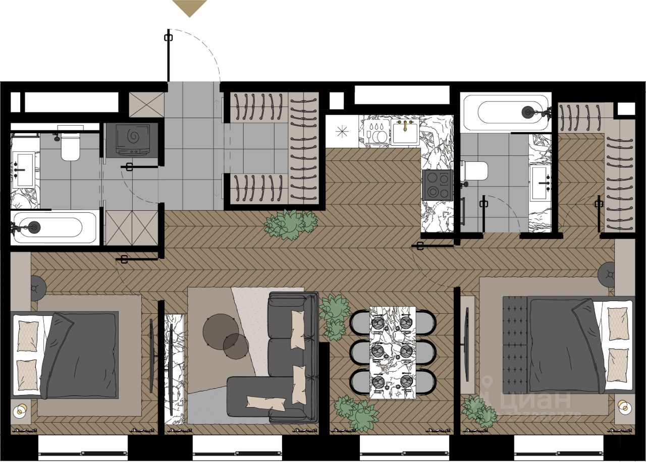 Авторское гранд-лобби В лобби предусмотрена лаундж-зона, чайная с камином, комната для хранения велосипедов и колясок. Доступ по системе FACE ID. В отделке лобби и лифтовых холлов использован декоративный камень итальянского бренда Atlas Concorde