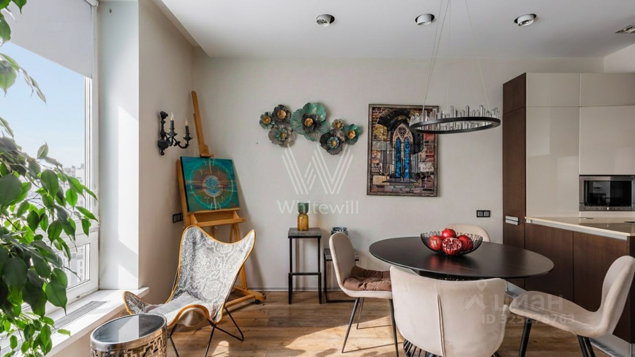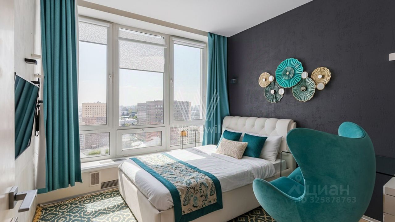 Квартира с 3 спальнями общей площадью 126 м² в квартале бизнес-класса ''Аэробус'' на 22 этаже. Выполнена дизайнерская отделка в современном стиле. Панорамные окна и высокие потолки наполняют пространство светом и воздухом. Спланирована гостиная, кухня с обеденной зоной, мастер-спальня с ванной комнатой, 2 спальни, одна из которых с гардеробной, санузел с душевой, прихожая. Квартира полностью меблирована и оборудована бытовой техникой, установлена система кондиционирования. Из окон открывается вид на город.