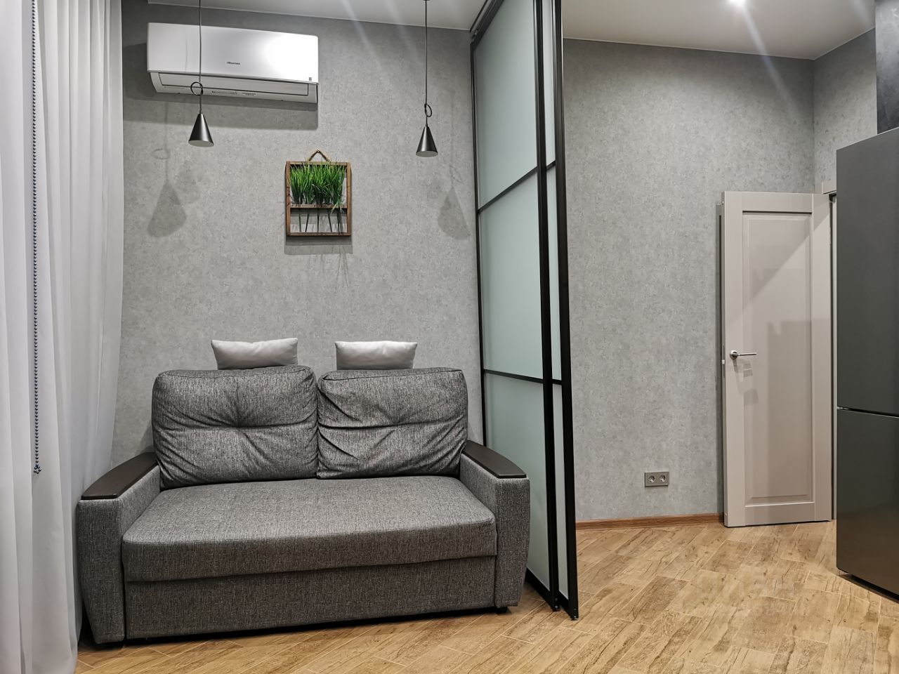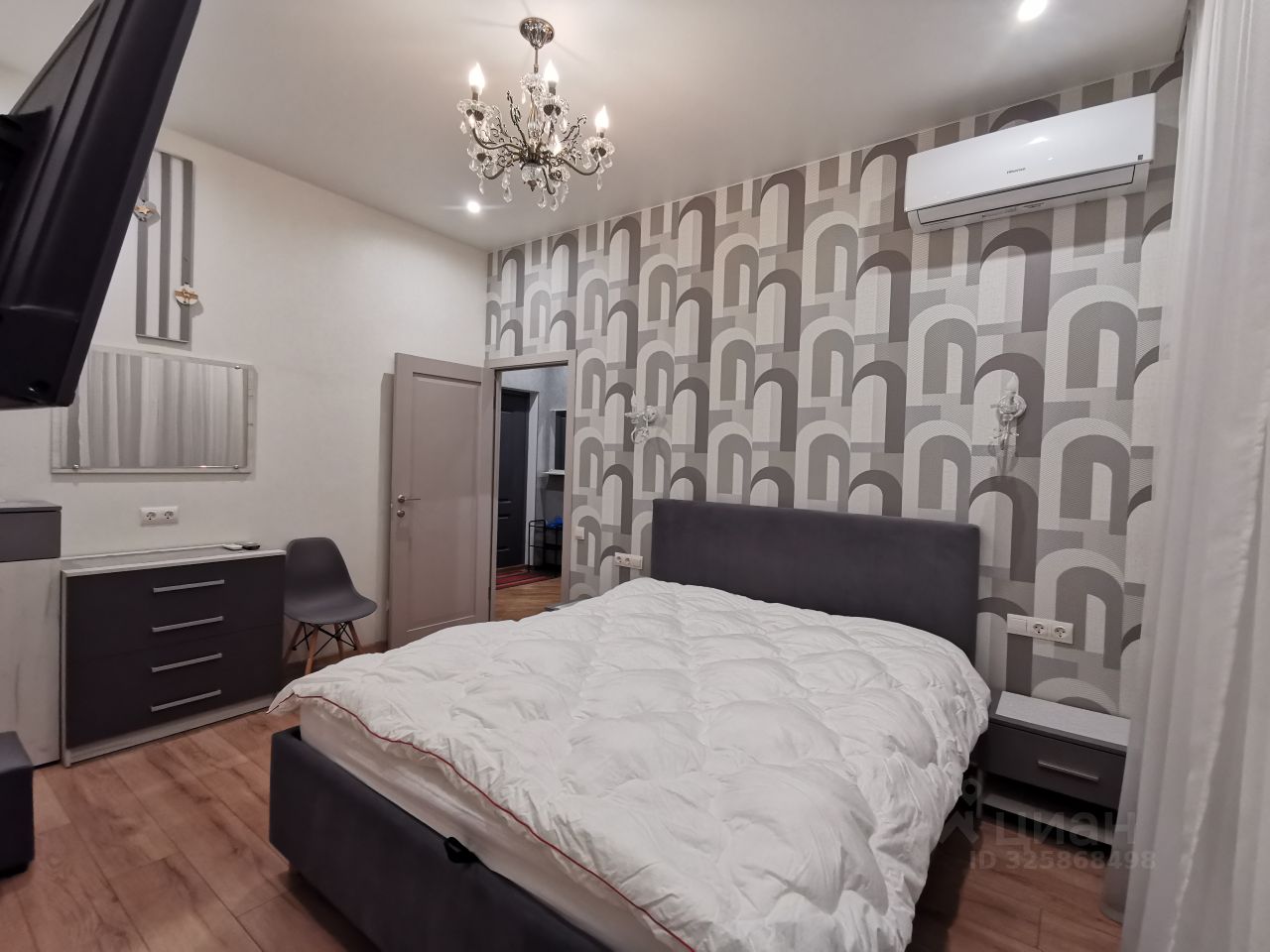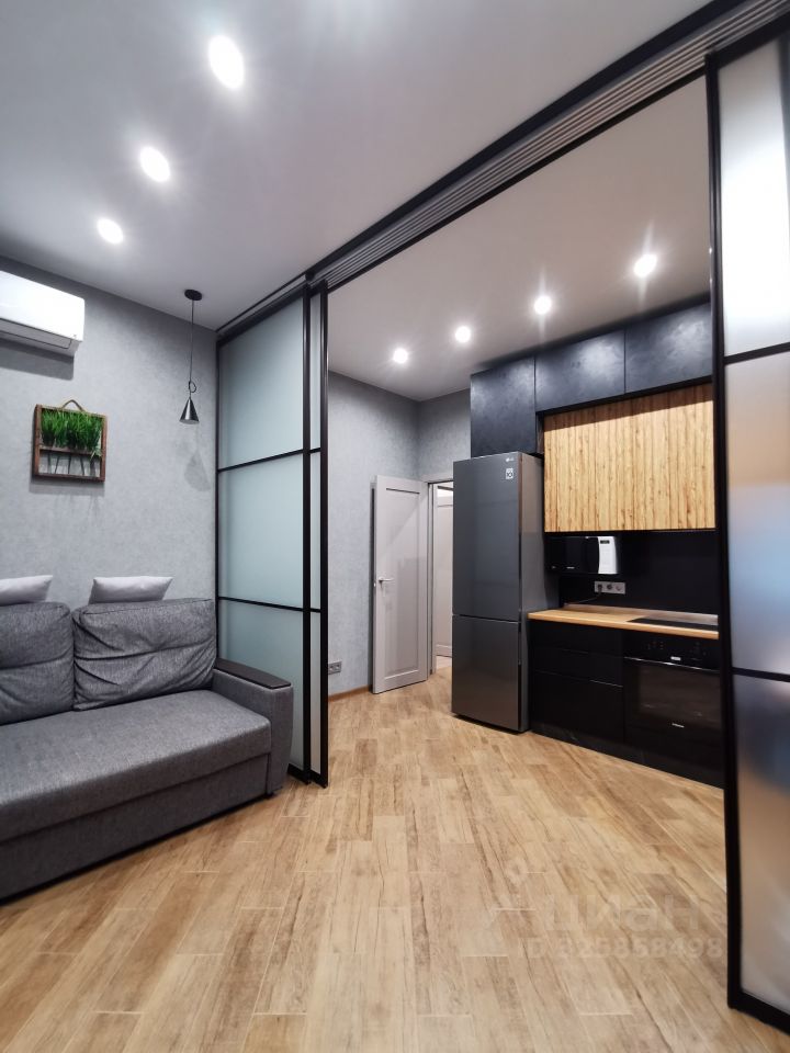 Сдаётся уютная Евродвушка в современном жилом комплексе с дизайнерским ремонтом, большая гостиная с кухней и отдельная спальня. Общая площадь квартиры составляет 45 кв. м, жилая площадь — 26 кв. м, кухня — 10м. Квартира расположена на 3-м этаже 23-этажного дома, построенного в 2020 году. Высота потолков — 3 метра, что добавляет простора и света.
