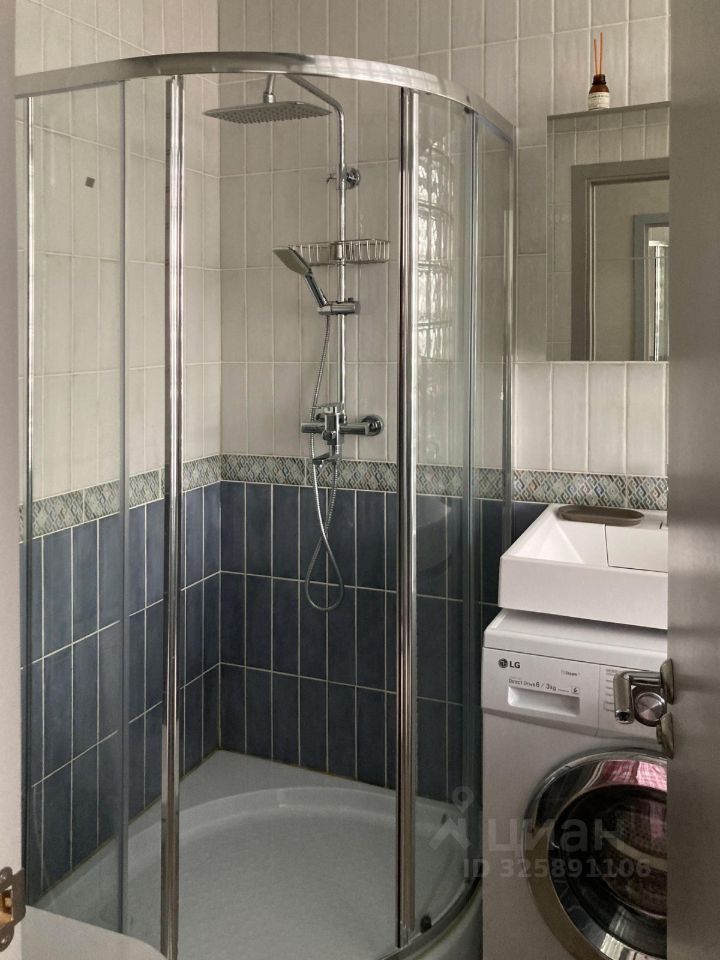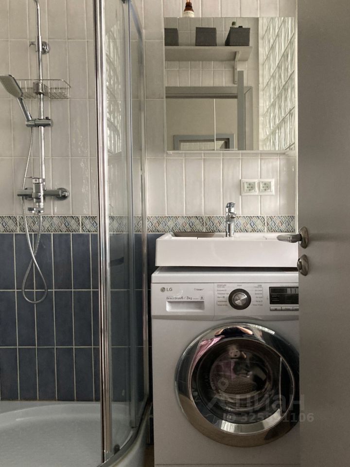 В зоне кухни кран, встроенный мини холодильник с морозилкой, компактная переносная индукционная плитка, вытяжка, чайник. В санузле гигиенический душ, стиральная машина с функцией сушки и полотенцесушитель.