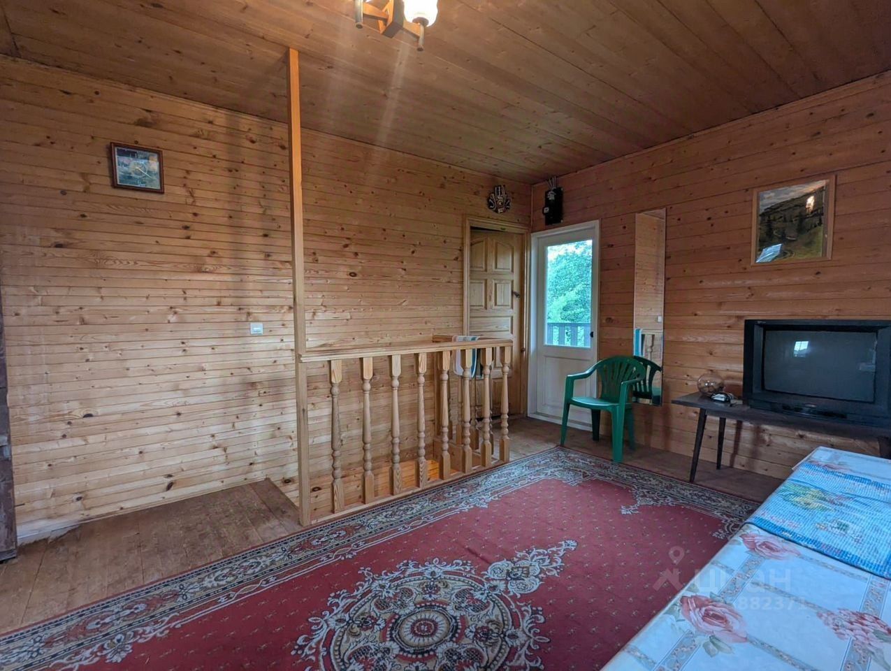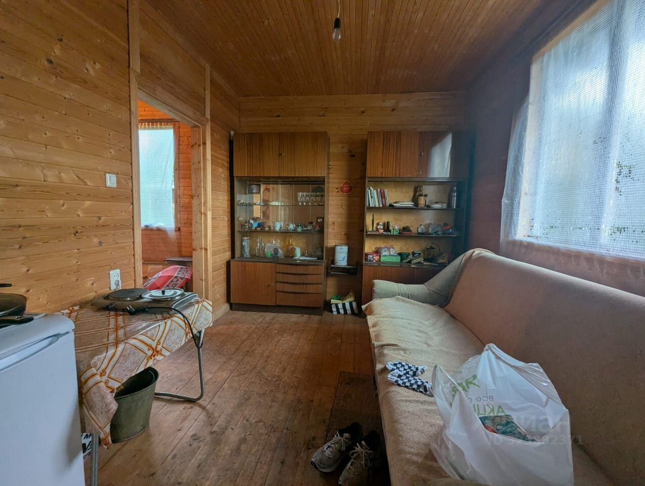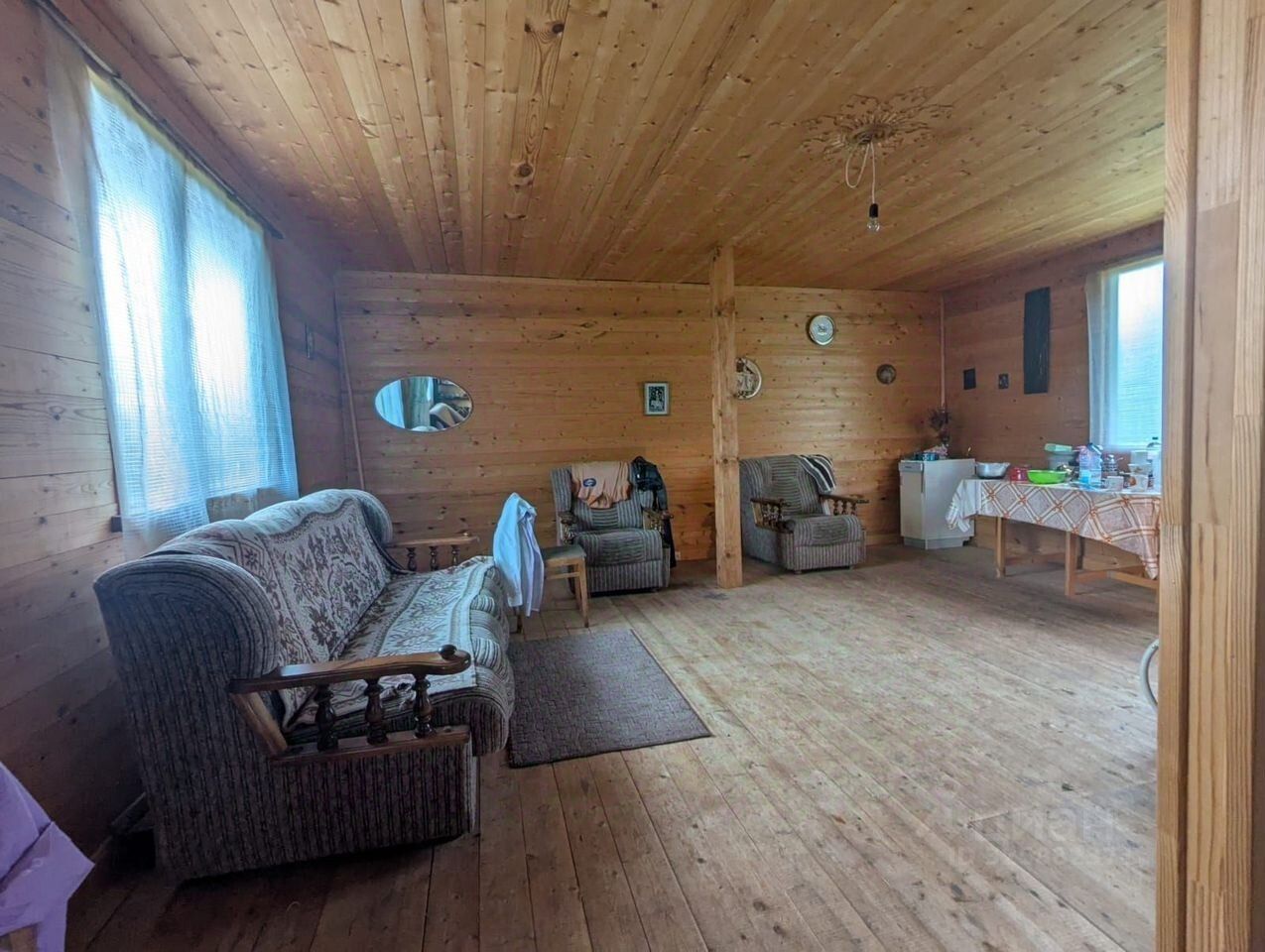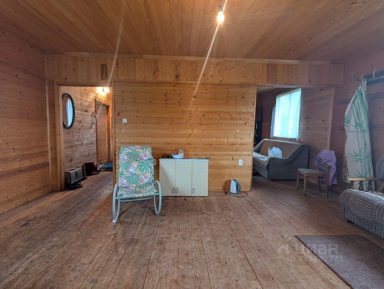 Дом сделан из бревна, утепленный.