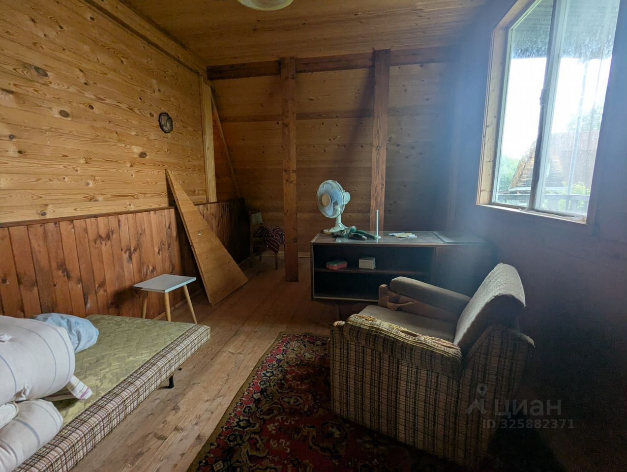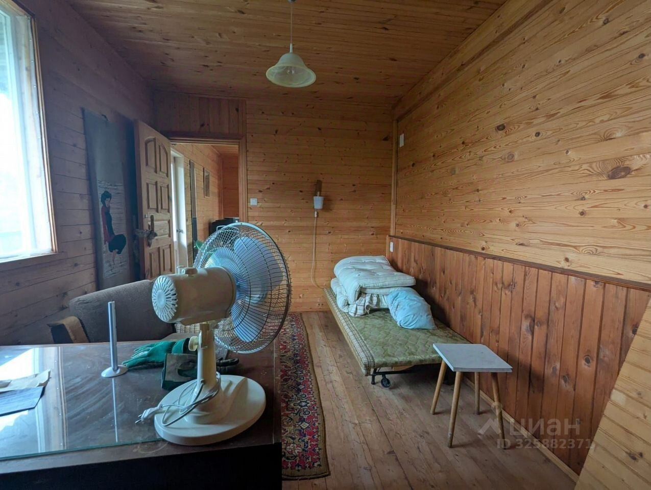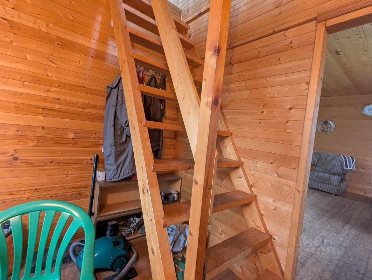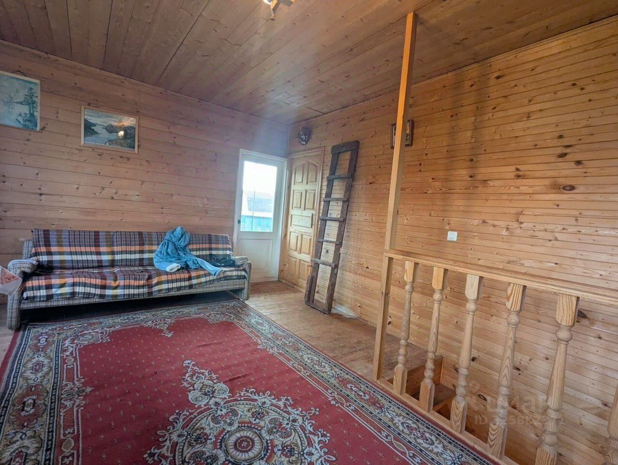 Дом сделан из бревна, утепленный.