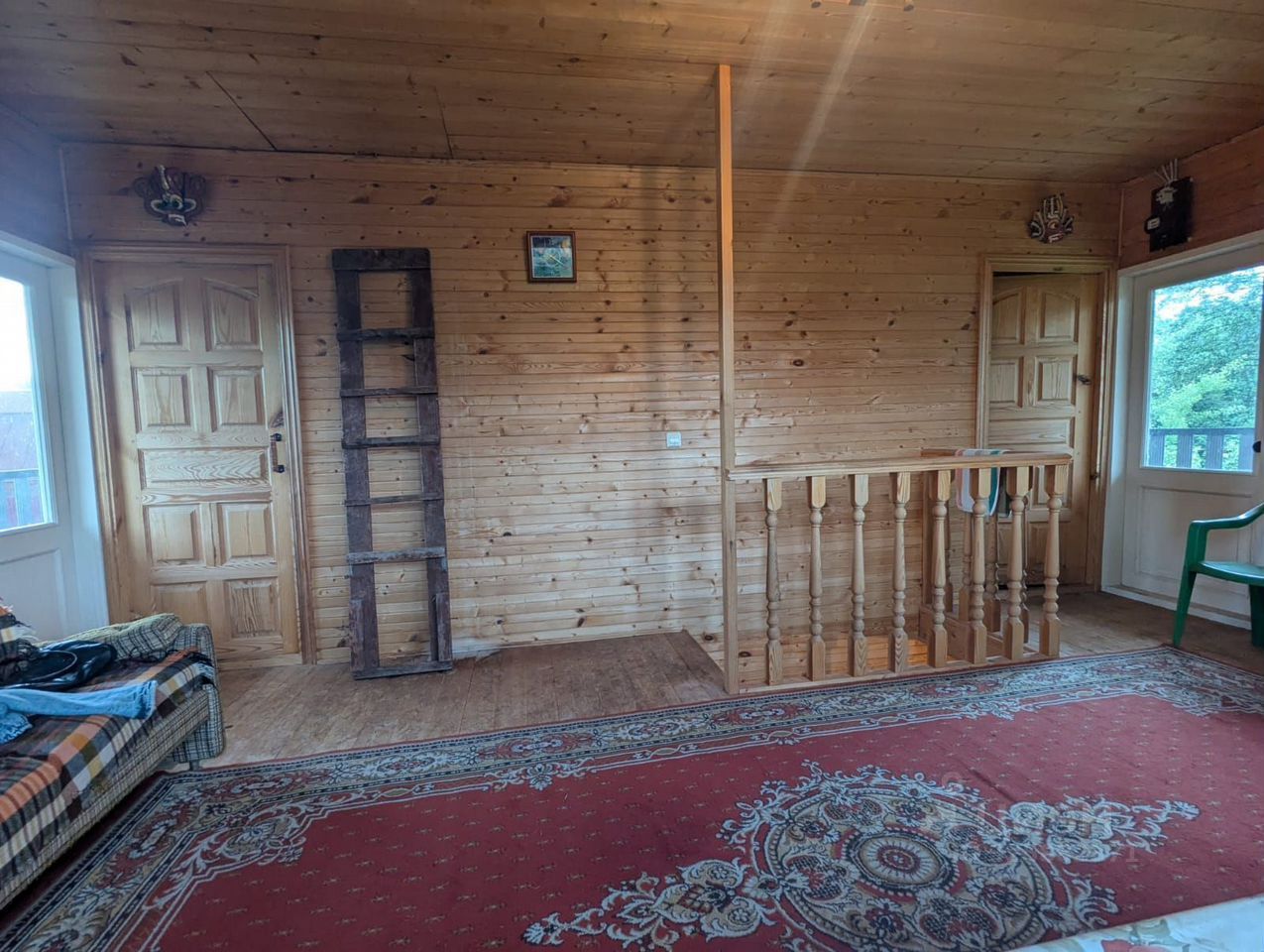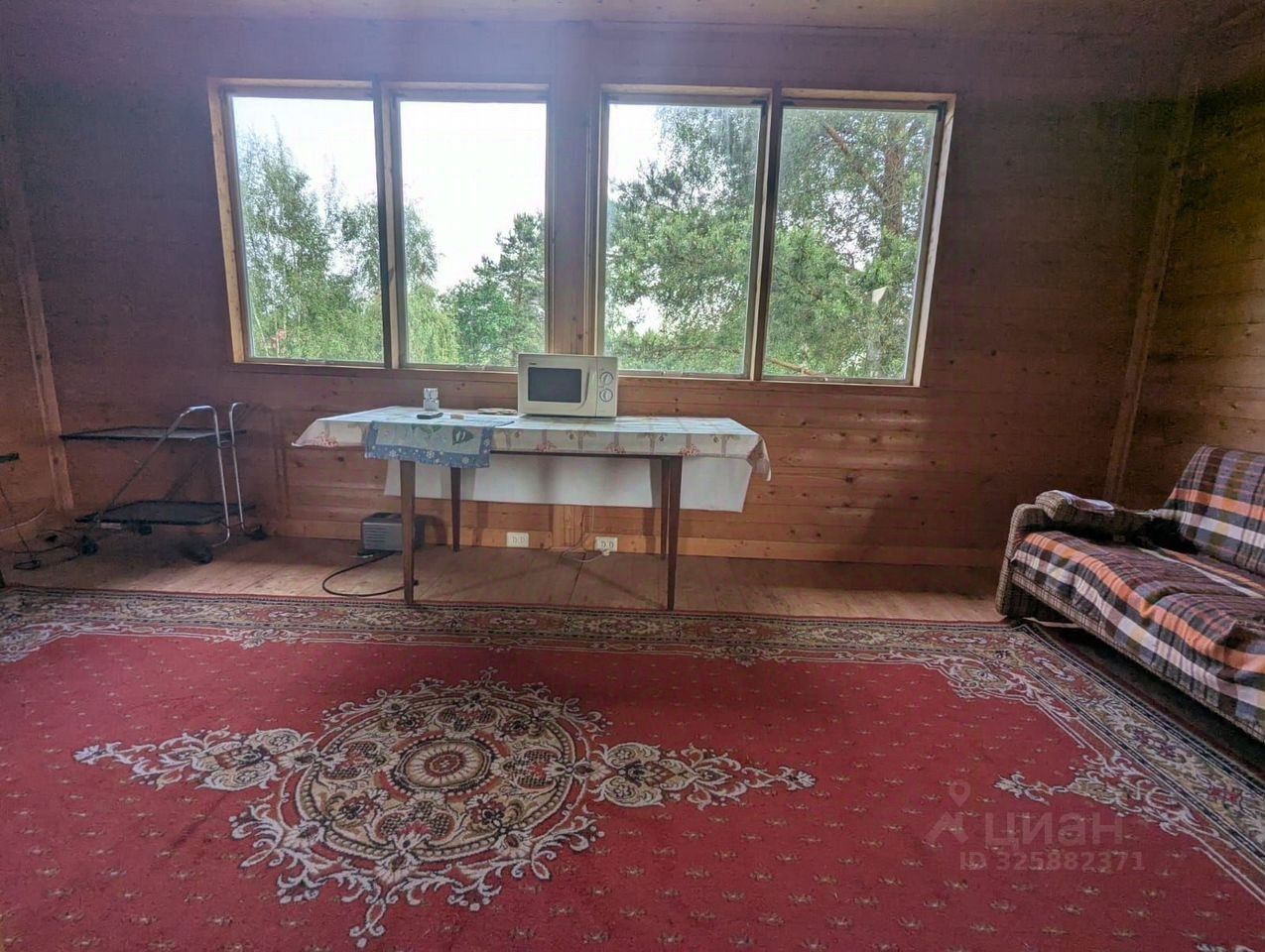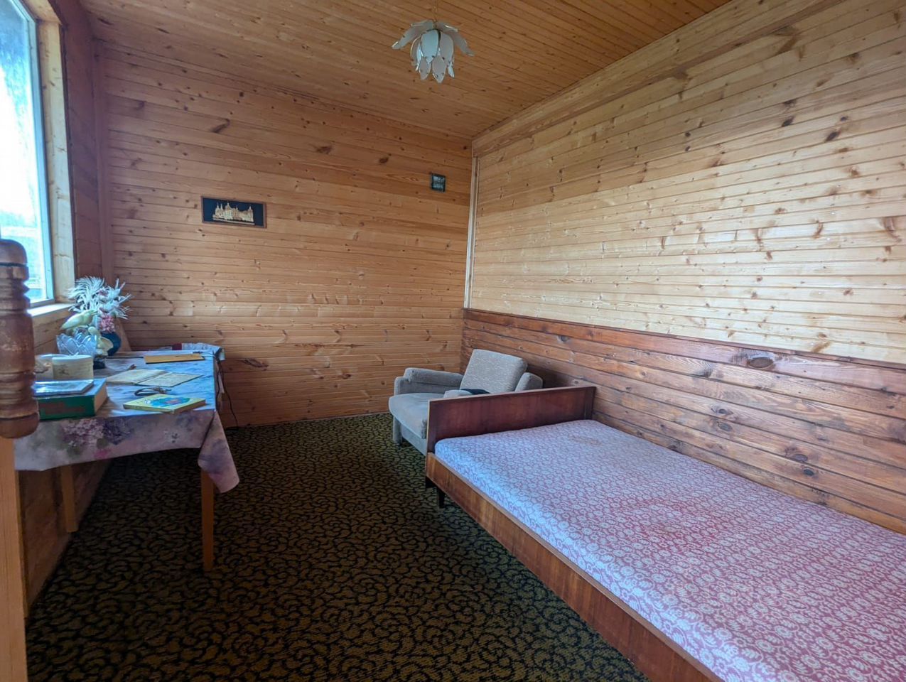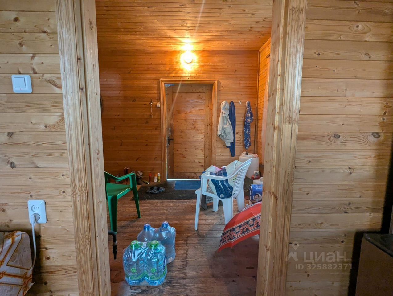 Дом сделан из бревна, утепленный.