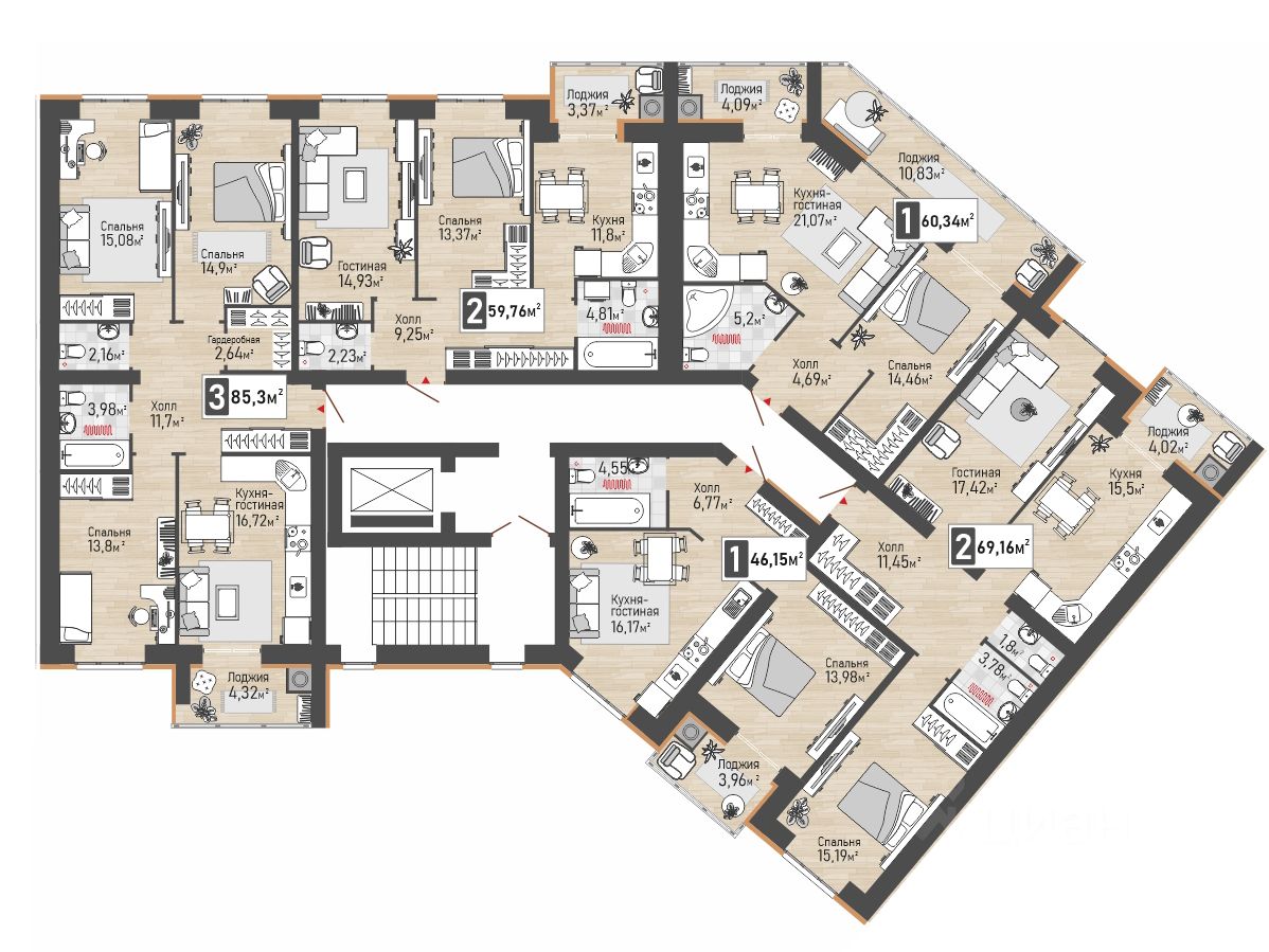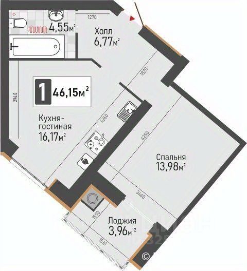 Общая площадь46,15 м2