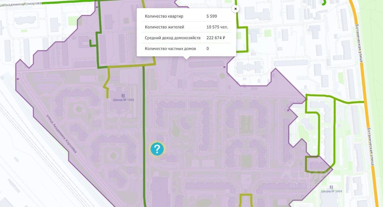 Линия домов: первая,Кол-во жителей (зона 5 мп): 10575 чел,