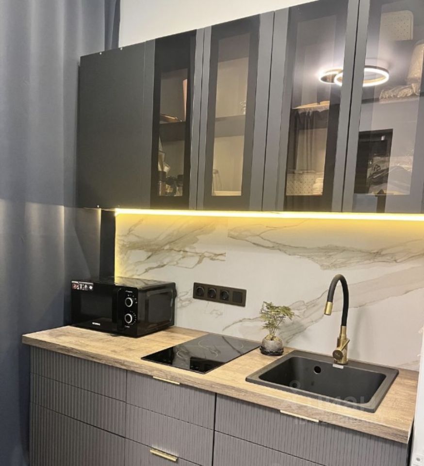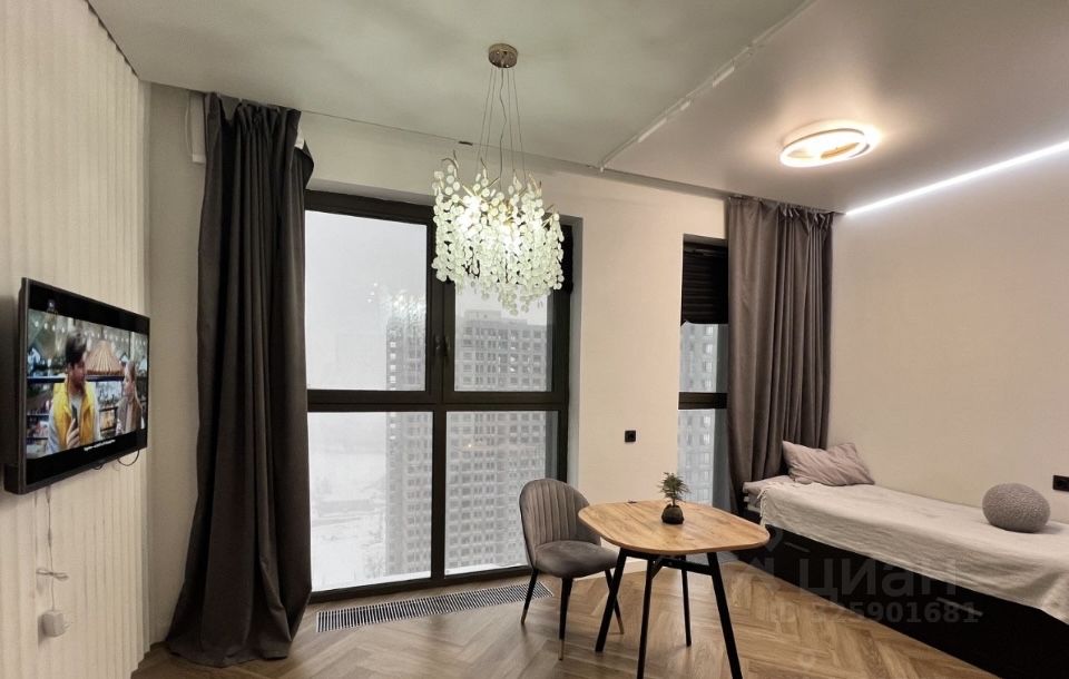 Сдаётся в аренду уютная студия с дизайнерским ремонтом. Квартира находится на высоком этаже , что гарантирует отличный вид из окон, выходящих во двор. Панорамные окна создают ощущение простора.
