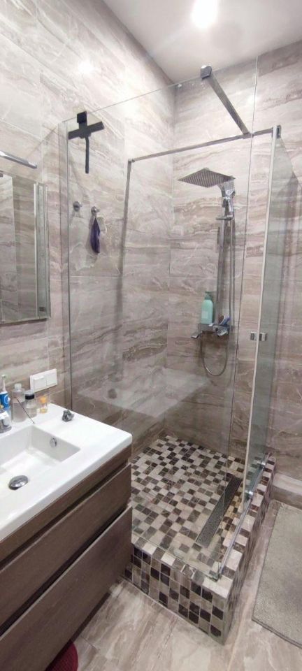 В квартире есть все необходимое для комфортного проживания: большой холодильник, стиральная машина с сушкой, посудомоечная машина, духовой шкаф, варочная панель на 4 конфорки, посуда, много мест для хранения. Кровать с удобным ортопедическим матрасом и местом для хранения. Диван раскладной, удобный. На полу комбинация пробкового ламината и кафеля. Несколько точек освещения. Два больших французских окна, шторы блэк аут.
