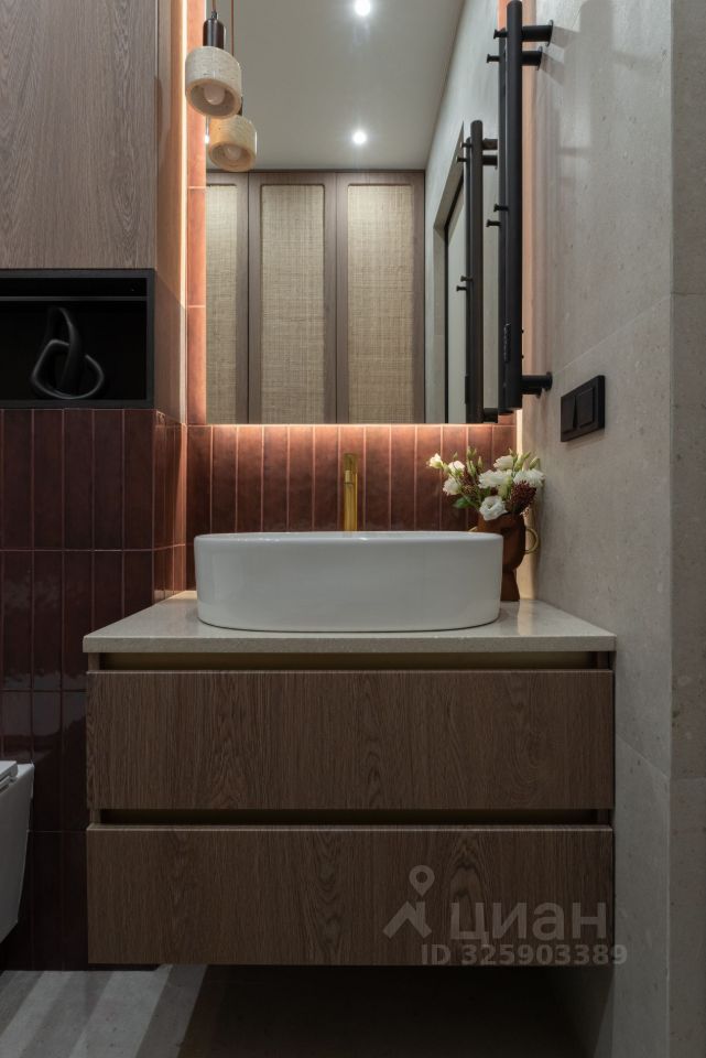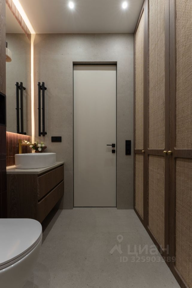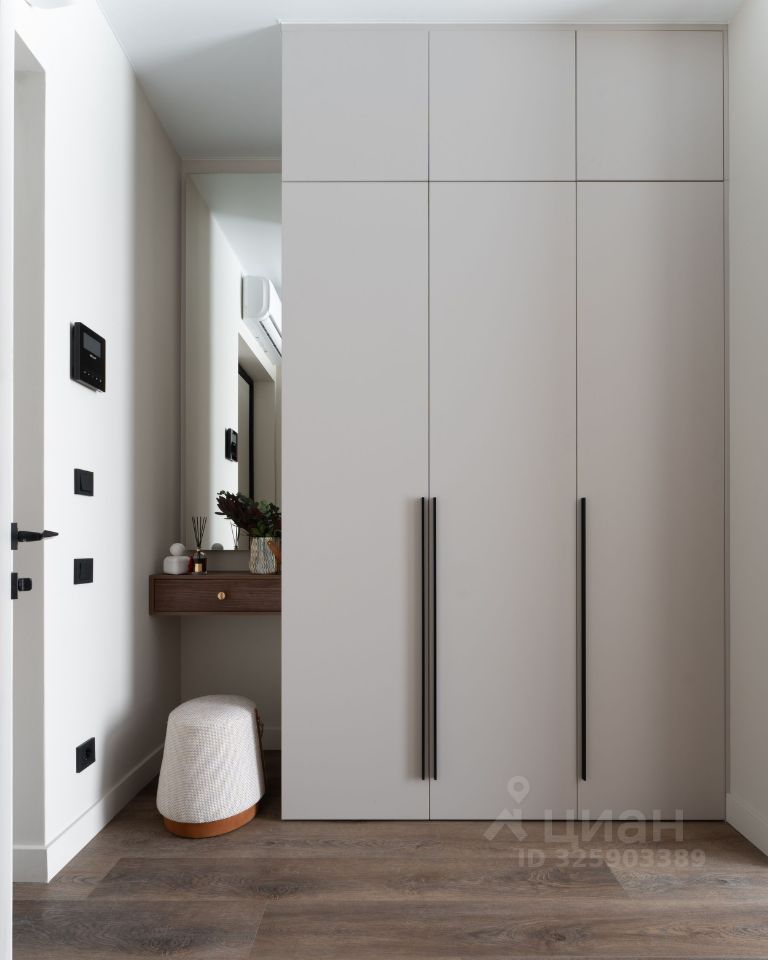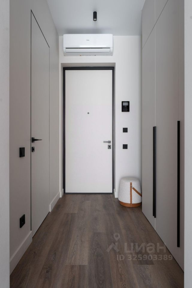 Установлен проточный водонагреватель. Стиральная машина с функцией сушки. Большой хозяйственный шкаф в санузле. Теплый пол в санузле. Кондиционер.
