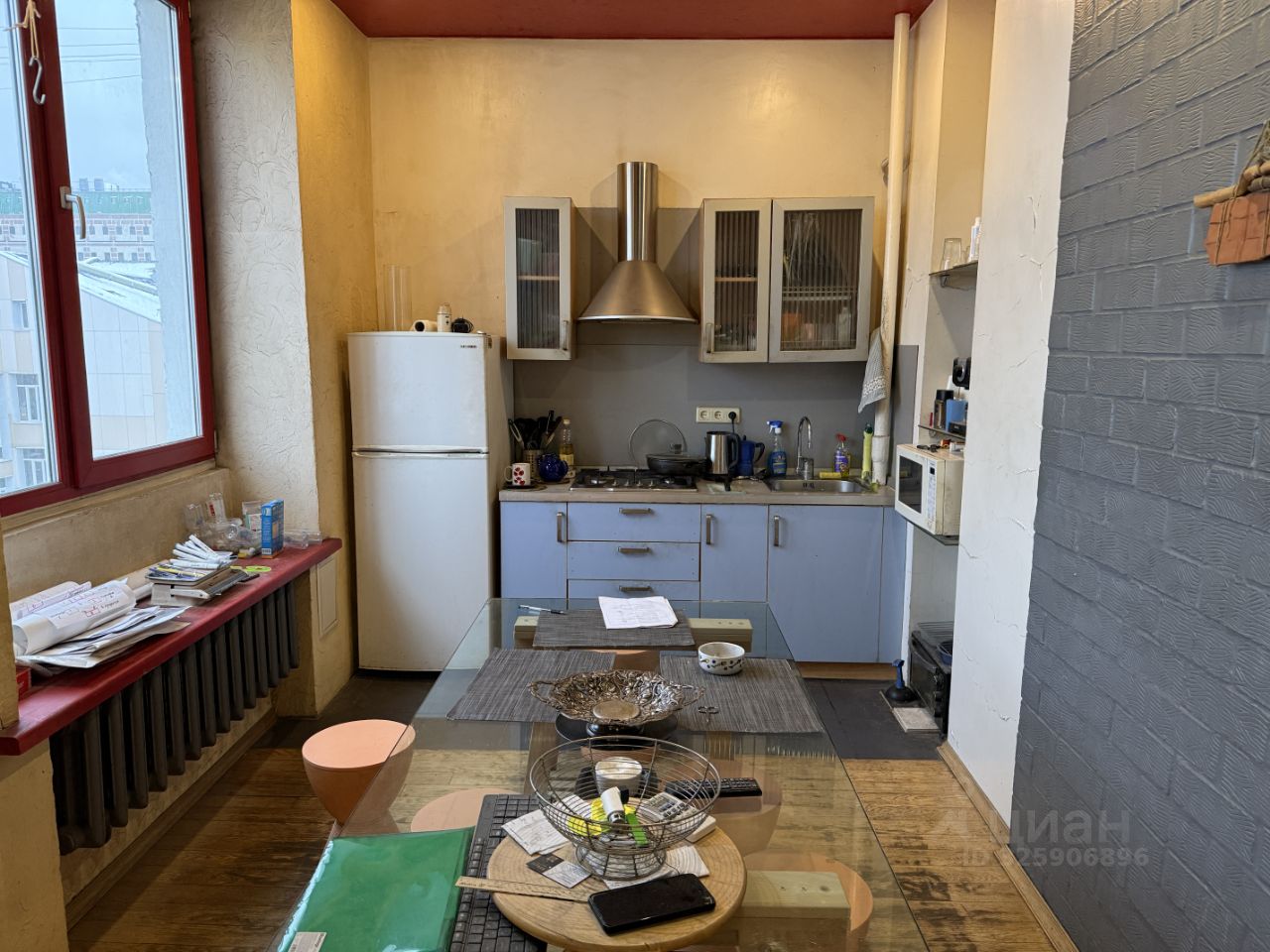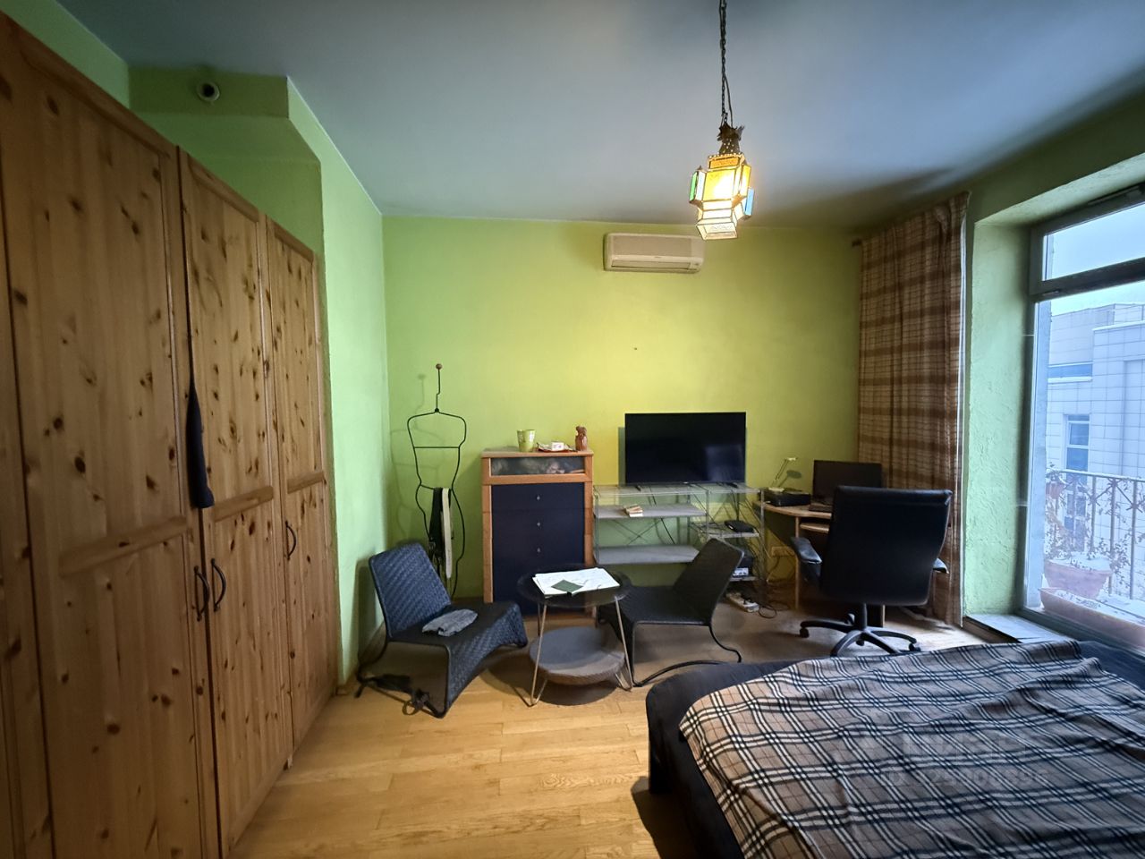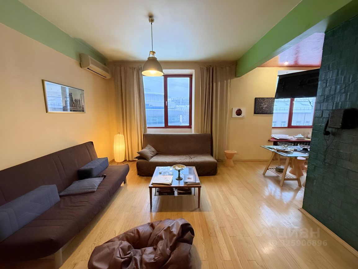 Квартира у метро Маяковская в центре Москвы просторная гостиная и спальня. Эта квартира 70,5 кв метров общей площади находится в центре Москвы, на Тверских-Ямских улицах, но хитро. Хотя дом одной стороной выходит на Садовое кольцо, окна квартиры смотрят в тихий двор с большим общественным садом с дубами, розами и яблонями- по сути, свой небольшой парк. До метро Маяковская и Тверской улицы 6-7 минут пешком, до метро Новослободская 11 минут, до Манежной площади и Кремля 20 минут, круглосуточный наземный общественный транспорт (4 остановки у дома). Для жителей дома парковочные места во дворе, закрытом шлагбаумом. Дом 1953 года постройки, с бетонными перекрытиями, 5 этаж 9-этажного дома с лифтом, в доме детский сад премиум-класса на 1 этаже (не шумно), салоны красоты и продуктовый магазин, в шаговой доступности десятки кофеен, ресторанов и магазинов. Квартира газифицирована, газовая плита и колонка - отключений горячей воды не бывает. В собственности с 1996 года, жилая площадь была расширена за счёт коридора, кухня 9 кв метров соединена с гостиной, спальня 16 кв метров с балконом и французским окном. Остекление пакетами, 2005 год. Санузел раздельный (между туалетом и ванной несущая стена). Авторский ремонт с граффити, полностью переложенная электропроводка, дубовый паркет 2005 года, встроенные шкафы для одежды, Wi-fi. Несложная альтернатива.
