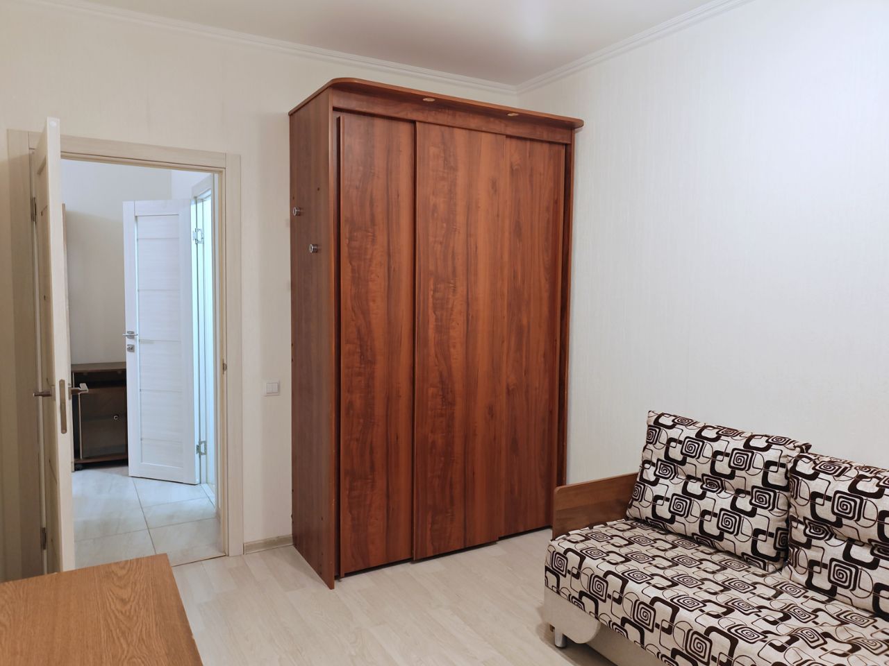 Квартира с изолированными комнатами, потолки 2,75 м. На кухне и в коридоре теплый пол за счет труб центрального отопления. Просторная кухня (11,8 м) с выходом на балкон с панорамным остеклением. В гостиной (18,2 м) установлен кондиционер, уютная спальня 11,3 м. Раздельный санузел в плитке, в туалете дополнительная раковина. Есть кладовая комната, которую можно переоборудовать в гардеробную.