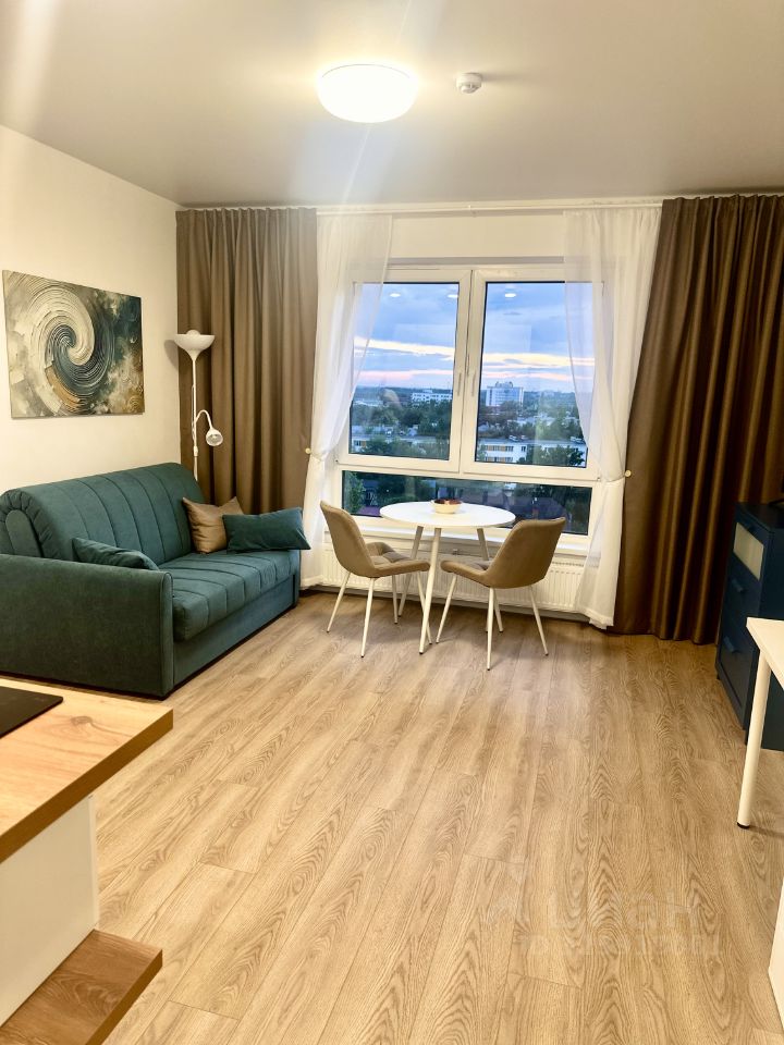 Сдаётся уютная студия в новом доме ЖК Юнино. Окна выходят во двор, что гарантирует тишину и спокойствие и шикарный вид из окна, вечером можно сидеть и любоваться закатами и смотреть на звезды с чашкой чая или бокалом вина. В квартире выполнен евроремонт, что создаёт современную и комфортную атмосферу. Студия полностью меблирована: в комнате и на кухне есть вся необходимая мебель. Для вашего удобства установлена современная техника: кондиционер, холодильник, телевизор и стиральная машина автомат с активным паром, СВЧ, сенсорная индукционная варочная панель, чайник электрический, вытяжка. Кухня идеально подойдёт для приготовления и приёма пищи. Обеденный круглый стол и стул с антивандальным покрытием материал-велюр, можно переносить по комнате.