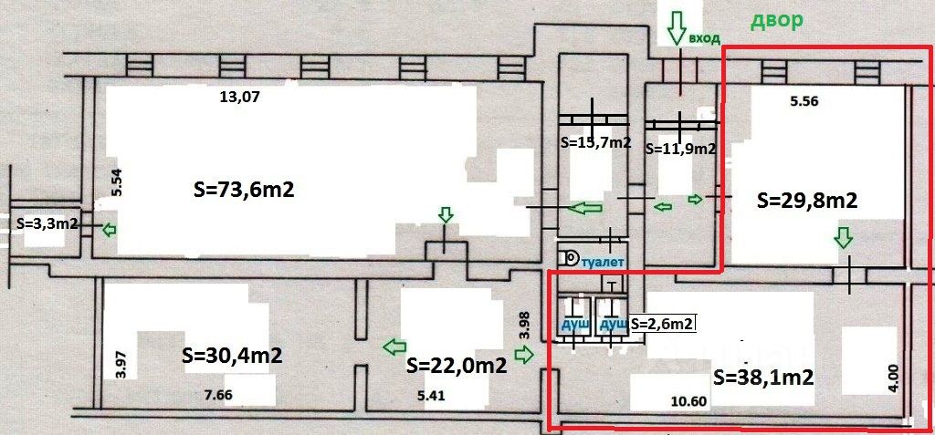 Площадь 230 м2 в подвале с отдельным входом. План помещения в объявлении. Маленькие окна. Санузлы и душевые (ранее был фитнес, сейчас шоурум). Потолки 260 см. Прямая аренда. Парковка бесплатная во дворе.