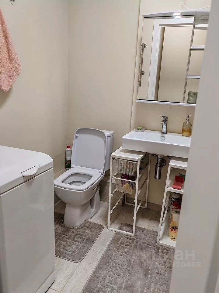 Квартира оборудована шкафами и диваном, что позволяет удобно разместиться 2-4 людям. Санузел совмещенный, выполнен в современном стиле. Оборудован стиральной машиной, электрическим змеевиком, зеркалом с подсветкой и электрической разедкой.