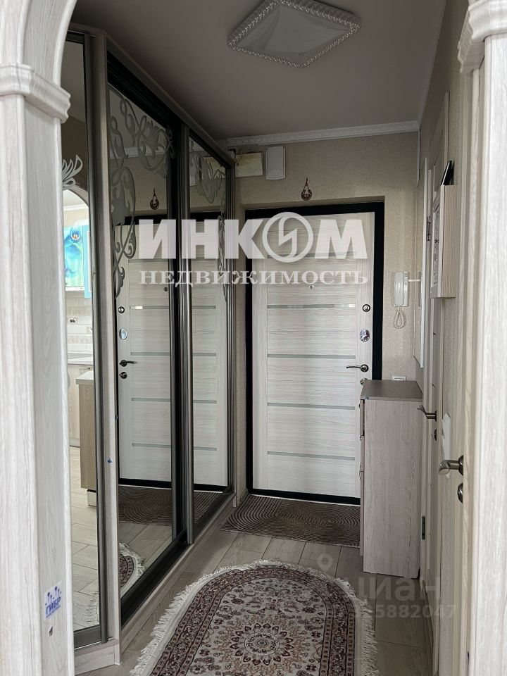 В квартире сделан качественный ремонт. Остается с мебель и техника. Комната поделена на две зоны, которые можно использовать под спальню и гостиную. В коридоре вместительный шкаф-купе. На кухне вмещается небольшой диванчик. Большая ухоженная лоджия на два окна, то есть вдоль всей квартиры.