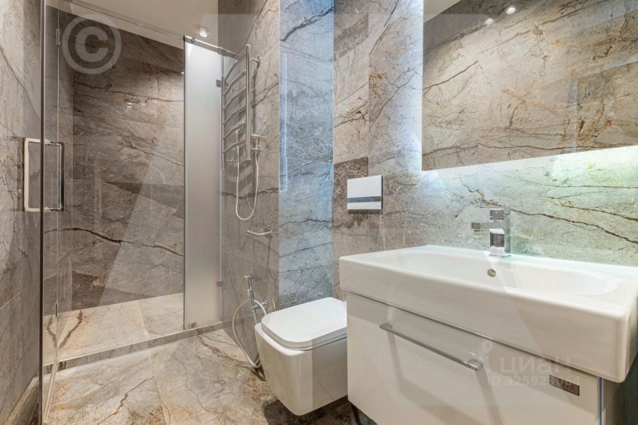 Преимущества: В отделке использованы высококачественные и натуральные материалы. Квартира укомплектована премиальной техникой Bosch, установлена кухня. Все продумано до мелочей для комфортного проживания. Кондиционирование воздуха и вентиляция. Квартира в светлых тонах, высокий этаж дает хороший уровень естественного освещения.