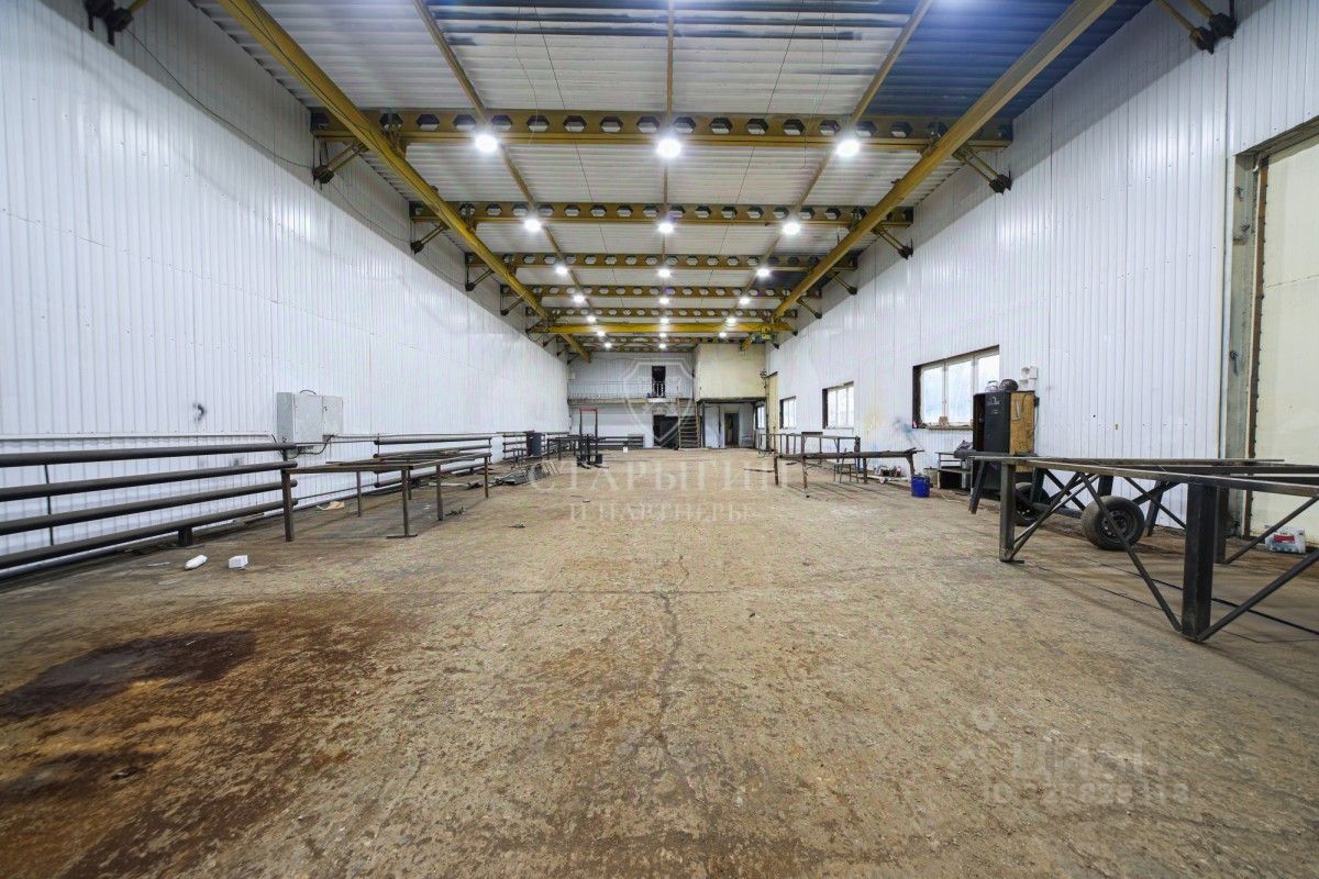 Главный ангар 950 м² разделён на два цеха: Освещенный, проведено 200 кВт. (33,5 м х11 м, 30,5 м х 11 м), высота потолков 6 м Первый цех (33,5 м/п * 11 м/п) — утеплён, с отоплением. Второй цех ( 30,5 м/п * 11 м/п) — холодный, использовался под металлоконструкции. Есть возможность объединение цехов в единое пространство.