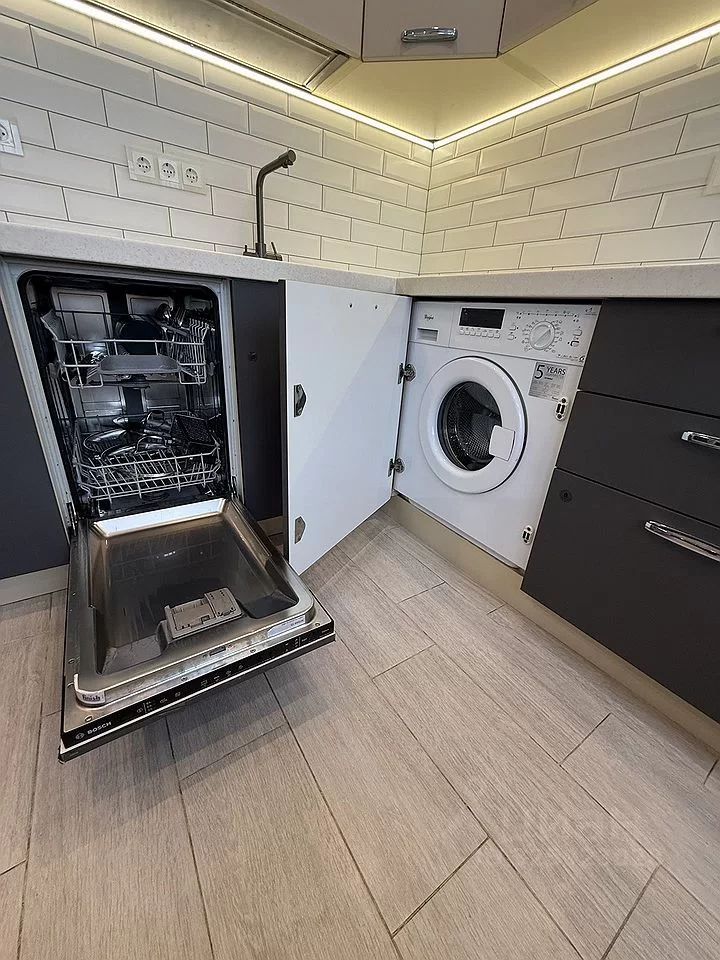 Квартира полностью меблирована и оснащена всей необходимой техникой: кондиционер, холодильник, посудомоечная машина, телевизор и стиральная машина. На кухне и в комнате есть современная мебель, а в ванной комнате установлена ванна. Удобная планировка позволяет чувствовать себя комфортно и уютно. В квартире есть одна лоджия для отдыха. Скоростной интернет и телефонная связь обеспечивают бесперебойное соединение с внешним миром.