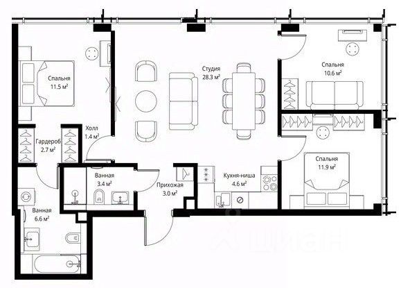 Квартира полностью мебилирована и оснащена необходимой техникой. Просторный объект, панорамные окна, высокие потолки.