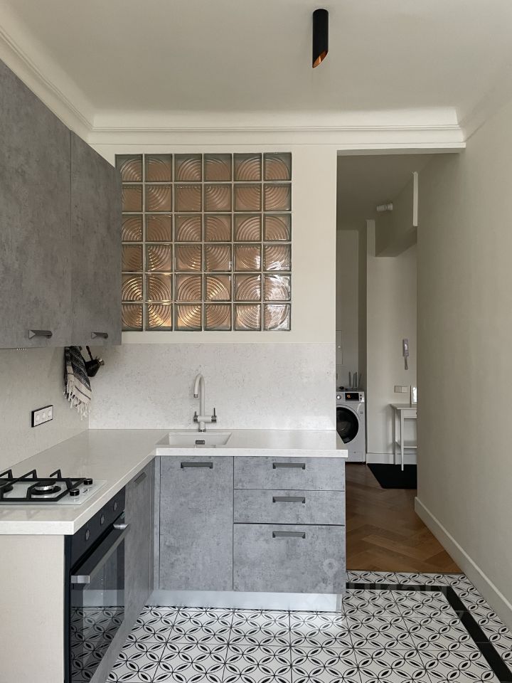 Расположена на 4 этаже 11-этажного подъезда. Общая площадь: 38,2 кв.м, высота потолков: 3,2 м. Ремонт в современном стиле. Квартира с мебелью, вывоз либо докупка обсуждаются. Посудомоечная машина, холодильник, стиральная машина, душевая, подогрев пола на кухне, паркет елка английская, высокоскоростной интернет. Окна выходят в тихий двор. Паркинг во дворе за шлагбаумом, взнос оплачивается отдельно. Spanish and English friendly.