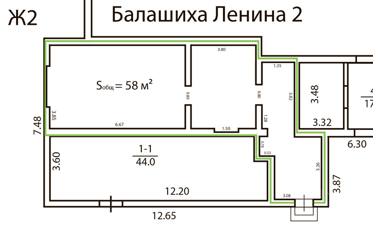 Общая площадь58 м2
