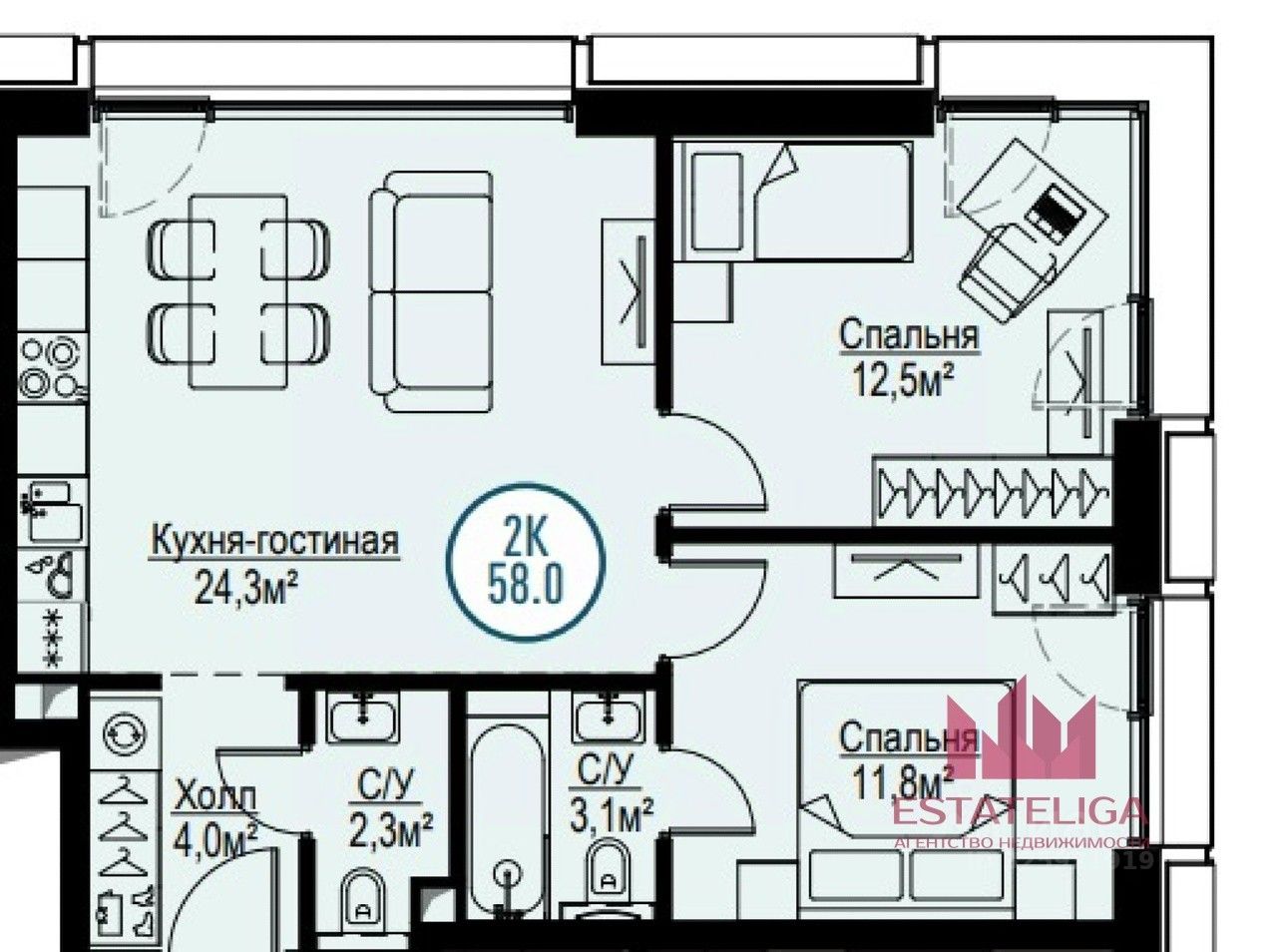 ПАРАМЕТРЫ: — Общая площадь: 57.