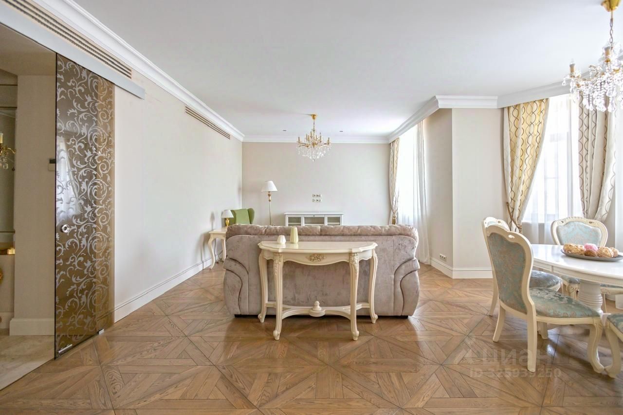 Предлагается в аренду просторную 4-комнатную квартира в строго охраняемом комплексе ЖК Доминион с подземным паркингом. Общая площадь — 160 кв. м. Планировка: кухня-гостиная, 3 спальни, 3 санузла, 2 гардеробные.Высокие потолки в 3,05 метра создают ощущение простора и света. До метро ''Университет'' всего 5 минут пешком.