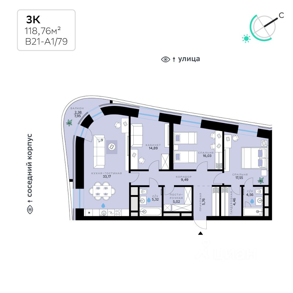 Общая площадь118,76 м2