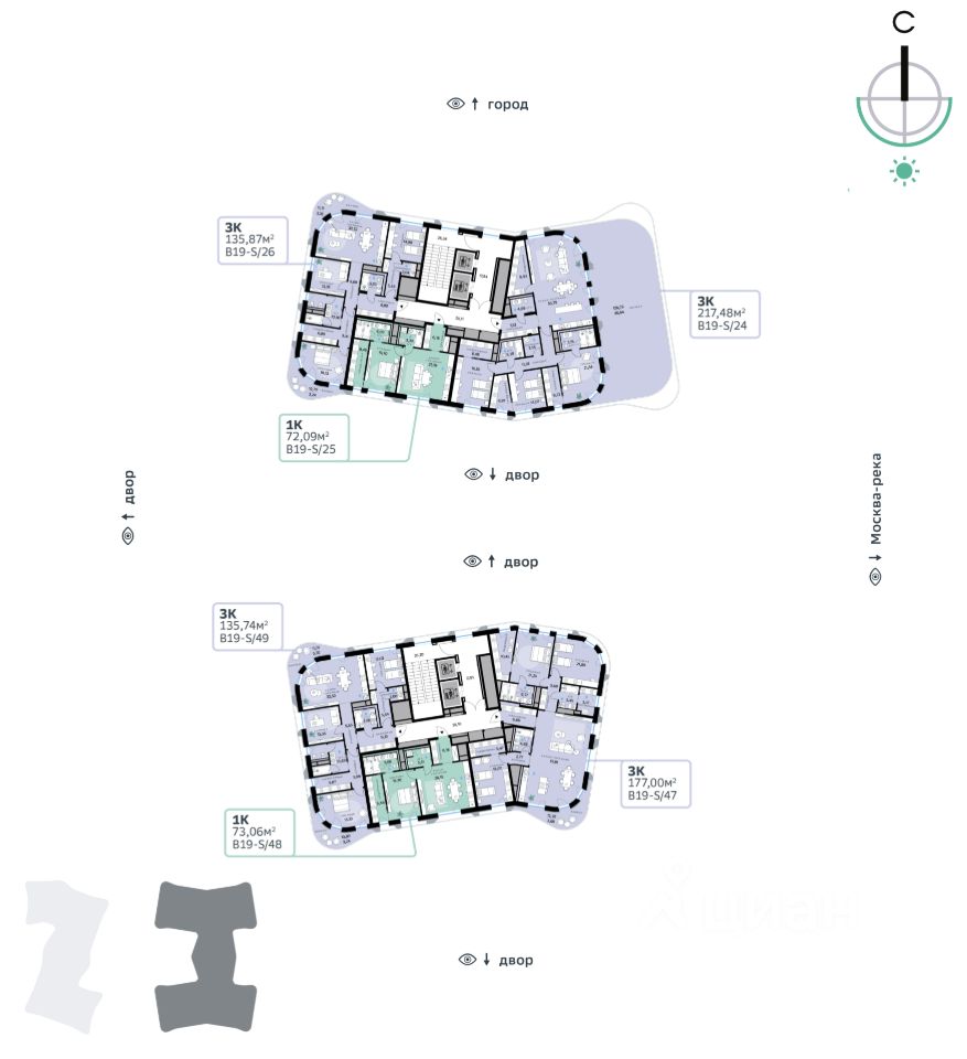 В продаже — трехкомнатная квартира, общей площадью 135,74 кв. м. Квартира расположена на шестом этаже семиэтажной секции клубного дома класса Суперб в новом районе СберСити, который строит Сбер. Дом находится на первой береговой линии Москвы-реки.