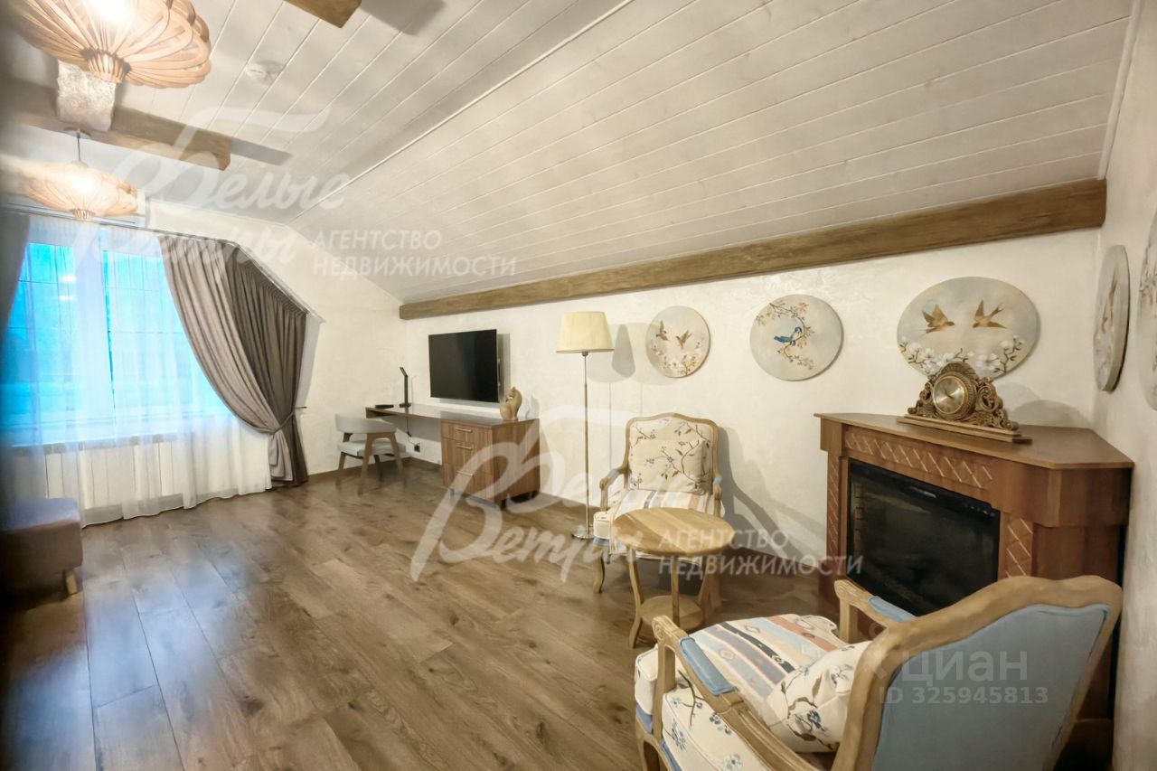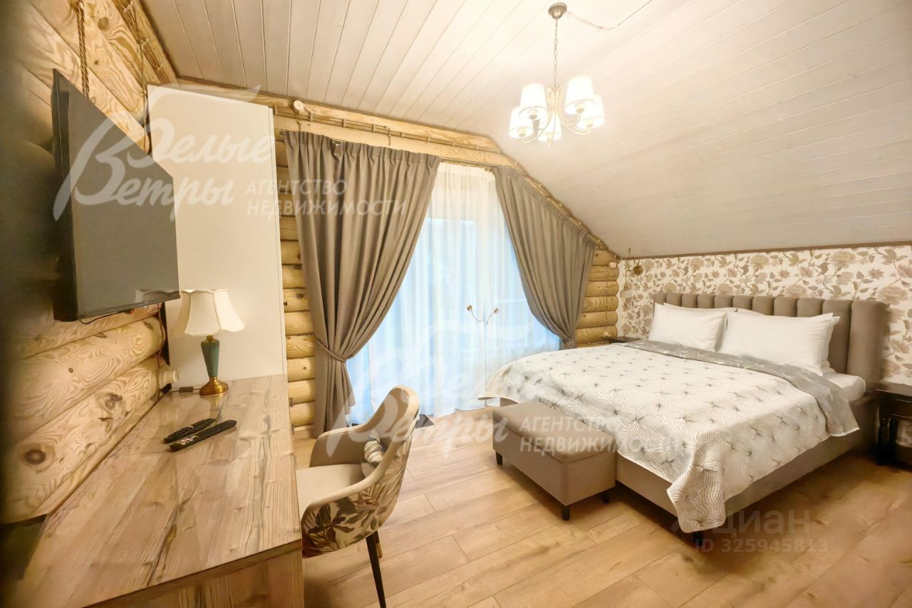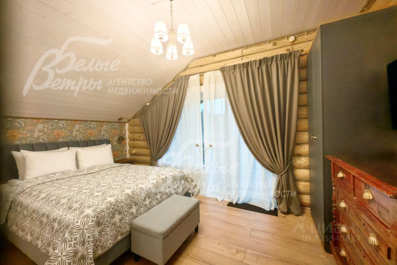 Описание внутренней отделки: стильная отделка в современные пастельных тонах: стены 2-го этажа - бревно и обои, высокие потолки, много света, ярких элементов интерьера. Окна второго этажа в доме панорамные и мансардные. В санузлах - плитка до потолка и бревно. Двери филенчатые белого цвета. Качественная стильная сантехника, большие душевые кабины с трапами..