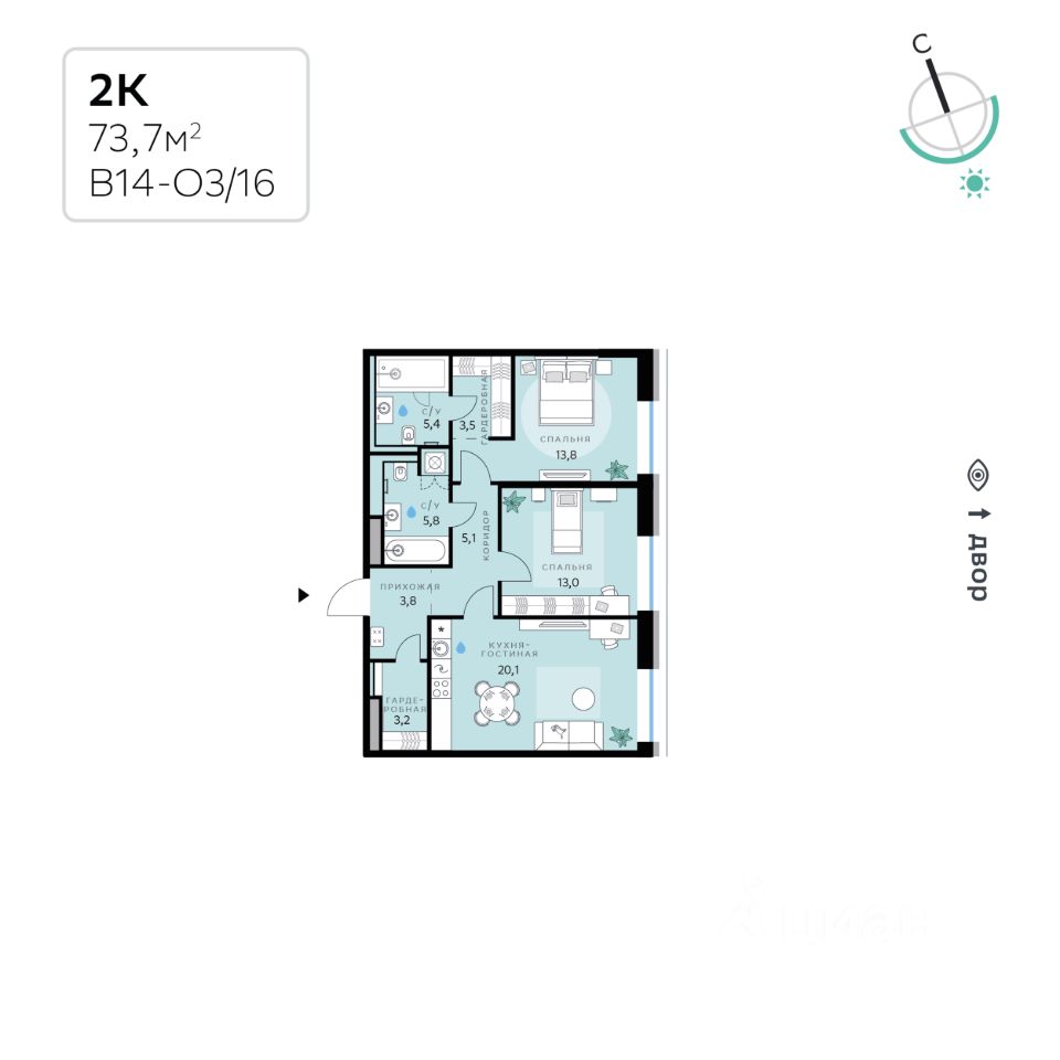 Общая площадь73,7 м2