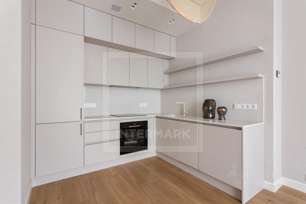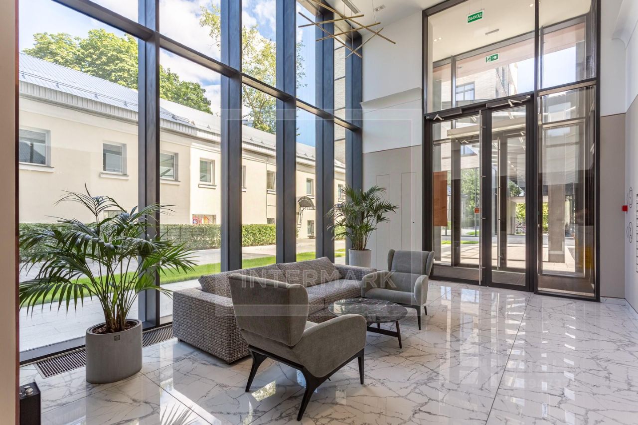 Спланированы кухня-гостиная, спальня, ванная комната, холл. Квартира невероятно уютная, очень тихая. Отделка выполнена в современном стиле в мягких оттенках. В квартире установлены система кондиционирования и общедомовая приточно-вытяжная система общедомовая. На полу инженерная доска (дуб). Квартира укомплектована встроенной мебелью с бытовой техникой. Большие окна открывают красивый вид в зелень ландшафтного дворика.