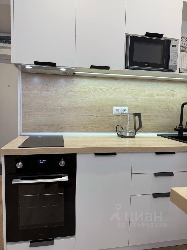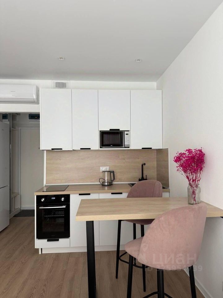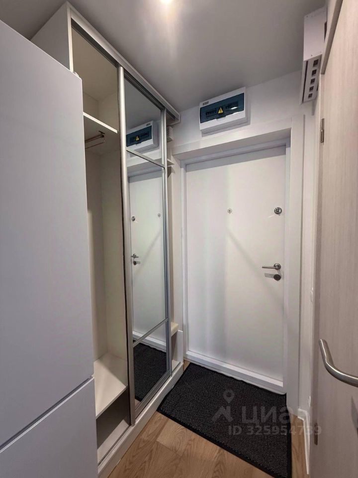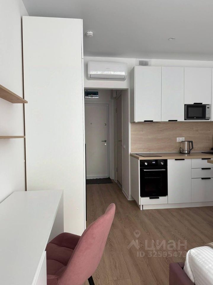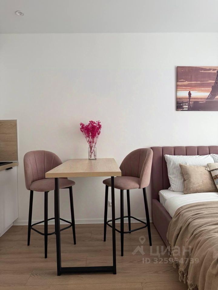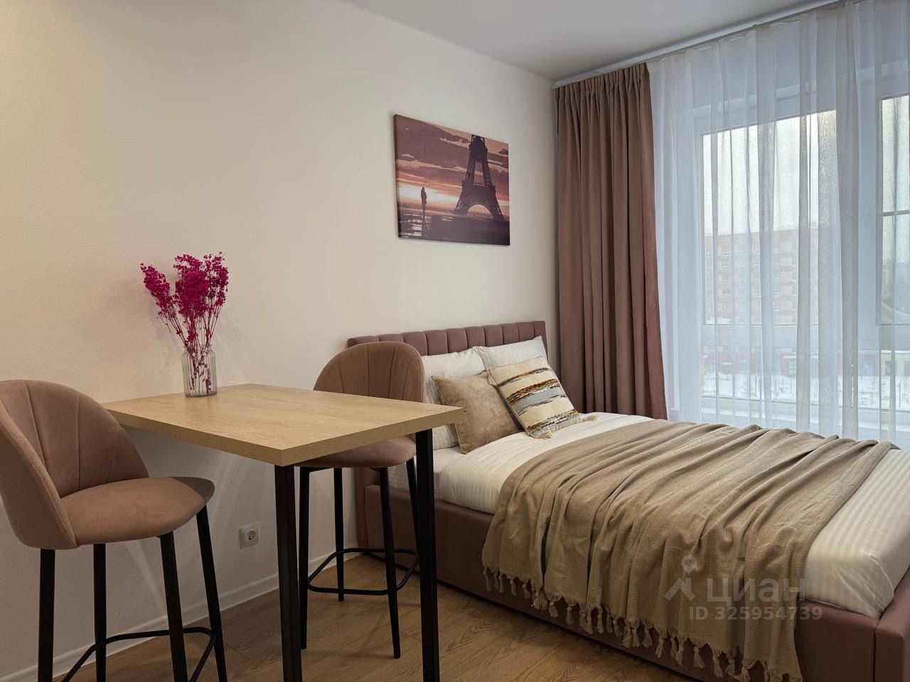 Стильная студия оборудована по максимуму : удобная кровать с подъемным меланизмом, комод,