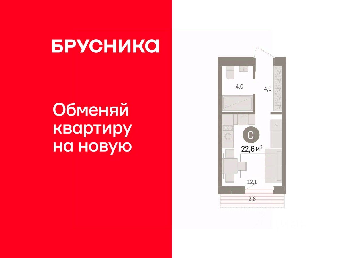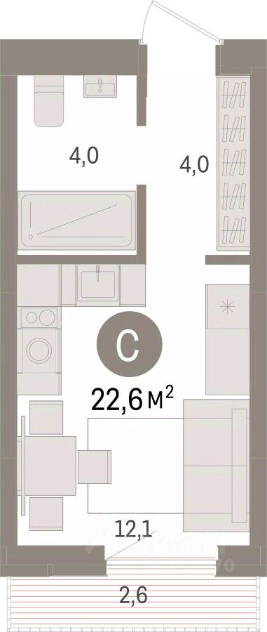 Студия в квартале Авиатор. Особенности планировки: балкон, предчистовая отделка. квартиры в нашей базе: АВТ03-Ж1.3.4.