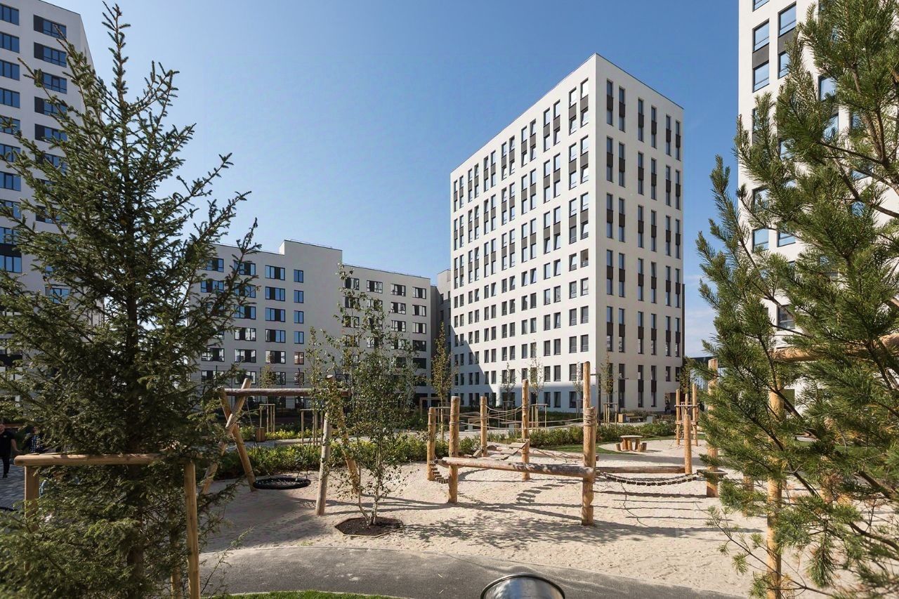 Квартал состоит из восьми домов. Вдоль улицы Аэропорт расположено 6-18-этажное здание с видовыми квартирами. Оно защищает внутреннее пространство от шума и пыли. В центре — четыре 7-9-этажные урбан-виллы. Для них характерны увеличенная площадь квартир, повышенная приватность и малое соседство (30 — 40 квартир). Завершают комплекс два полузакрытых блока высотой 8-16 этажей с фасадами фисташкового цвета и подземной парковкой. Благодаря переменной высотности застройка приобретает человеческий масштаб, во дворы проникает больше света, а число квартир, из которых открывается красивый вид, значительно увеличивается.