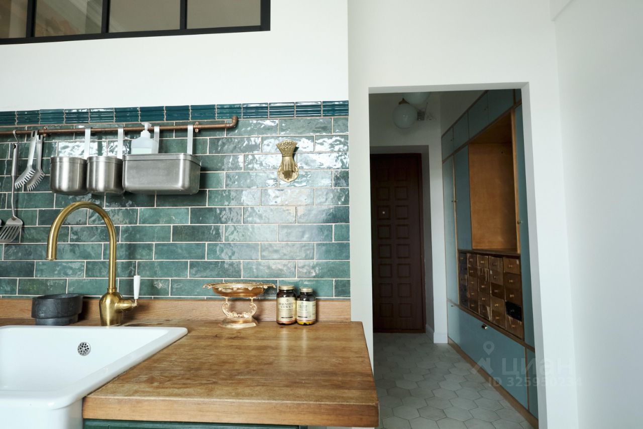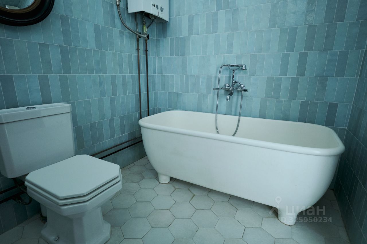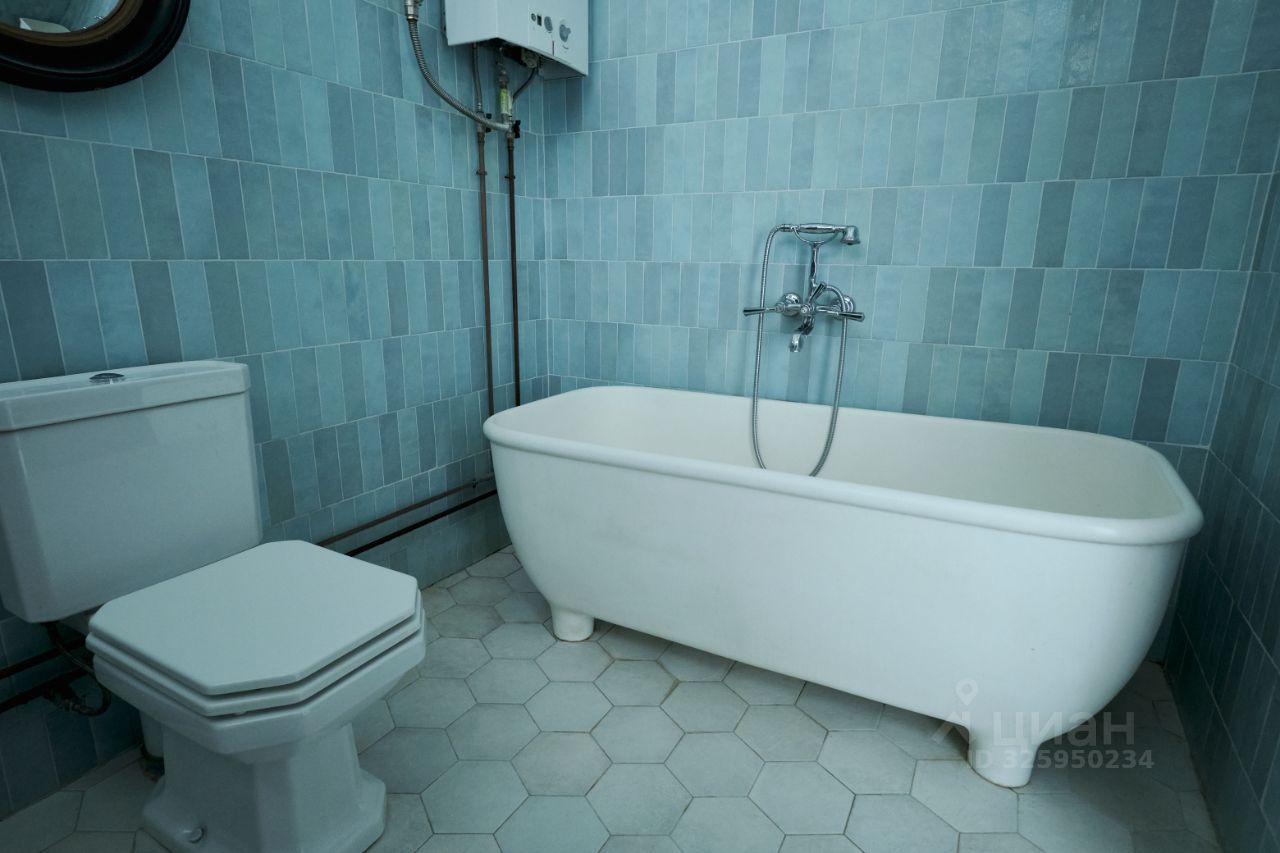 * Испанский керамогранит на полах в коридоре, кухне и ванной. * Паркет в гостиной и кабинете/спальне. * Испанская плитка в ванной и на кухонном фартуке. * Тёплые полы в ванной, коридоре и кухне — босиком круглый год. * Медные трубы в ванной для надёжности на годы вперёд. Ванная — это отдельная любовь: отдельно стоящая ванна на заказ из искусственного камня, итальянские латунные смесители, унитаз Duravit, шикарная итальянская раковина, дорогая фурнитура. А огромное окно заливает всё естественным дневным светом !