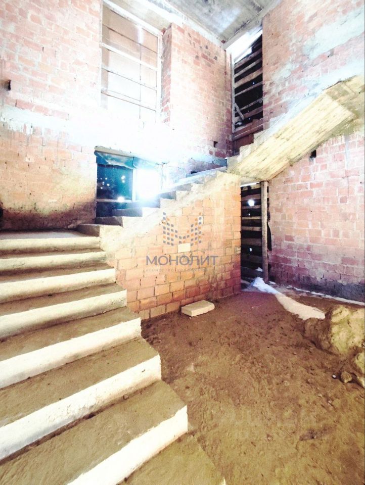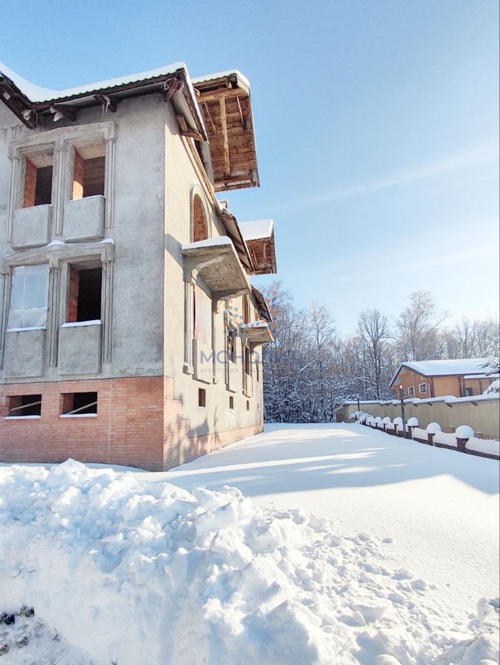 ДОМ: * 3 этажа (один из них - подвал, 496,6 кв м, 5 спален, * стены - керамический кирпич, толщина 80 см (хорошо держит температуру), * глубокий фундамент из ФБС, большой подвал с высотой потолка 3 метра, * перекрытия железобетонные, * высота потолка в доме 5 метров, * вода - центральная, * канализация - центральная, * отопление - газ (не подведен, по границе участка), * эл-во 15 кВт, прямой договор с Мосэнерго, * 1 этаж: прихожая, кухня - зал, коридор, спальня, сан узел, кладовая, спуск в подвал, * 2 этаж: коридор, 4 спальни, санузлы, кладовая, лестница на мансарду, * подвал: котельная, помещение для хранения, спорт зал, * без внутренней отделки.