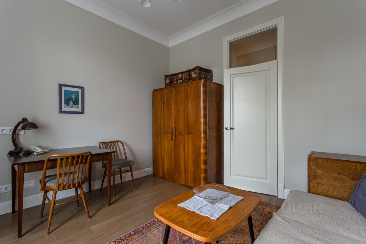 Редкая по красоте исполнения и атмосфере квартира в историческом доме 1926 года постройки. В квартире выполнен новый качественный ремонт в старомосковском стиле . В отделке использованы качественные материалы, а предметы интерьера и мебели тщательно отреставрированы. Квартира сохранила атмосферу старой Москвы середины 20 века, но вместе с тем полностью оборудована современной бытовой техникой (установлены посудомоечная, стиральная и сушильная машины). Высокие дверные проемы в белом цвете со стеклянными фрамугами расширяют пространство и наполняют квартиру светом. Планировкой предусмотрена гостиная, спальня и кабинет. Уютная кухня, оборудованная современной бытовой техникой и совмещенный санузел с ванной. Двор дома огорожен и имеет просторную стоянку для автомобилей жильцов.