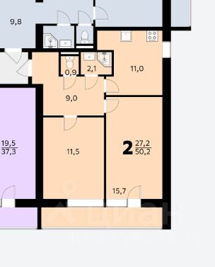 Две изолированные комнаты 16 и 12 кв.м. Просторная кухня 12 кв.м. Санузел совмещенный.