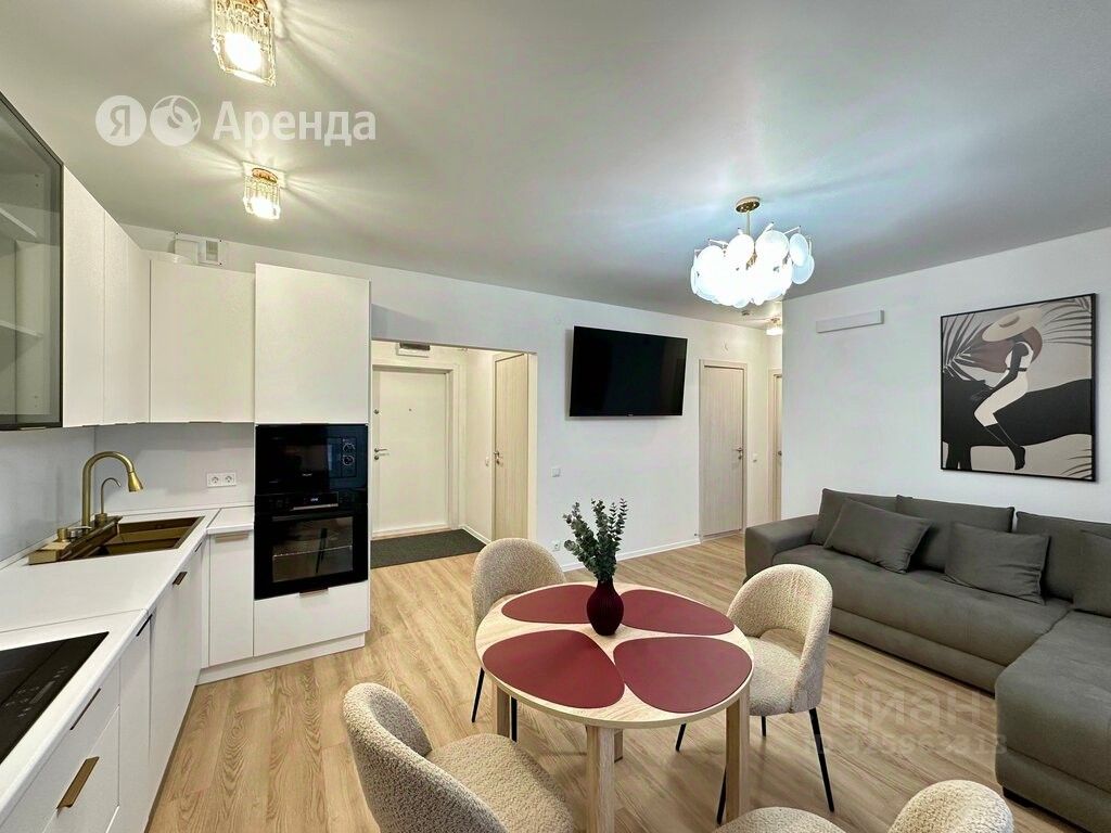 Сдаётся 2-комнатная квартира площадью 59 кв.м. с евроремонтом на 6 этаже в 38-этажном доме на срок от 11 месяцев. Из техники есть: Телевизор Духовой шкаф Стиральная машина Холодильник Посудомоечная машина Микроволновка