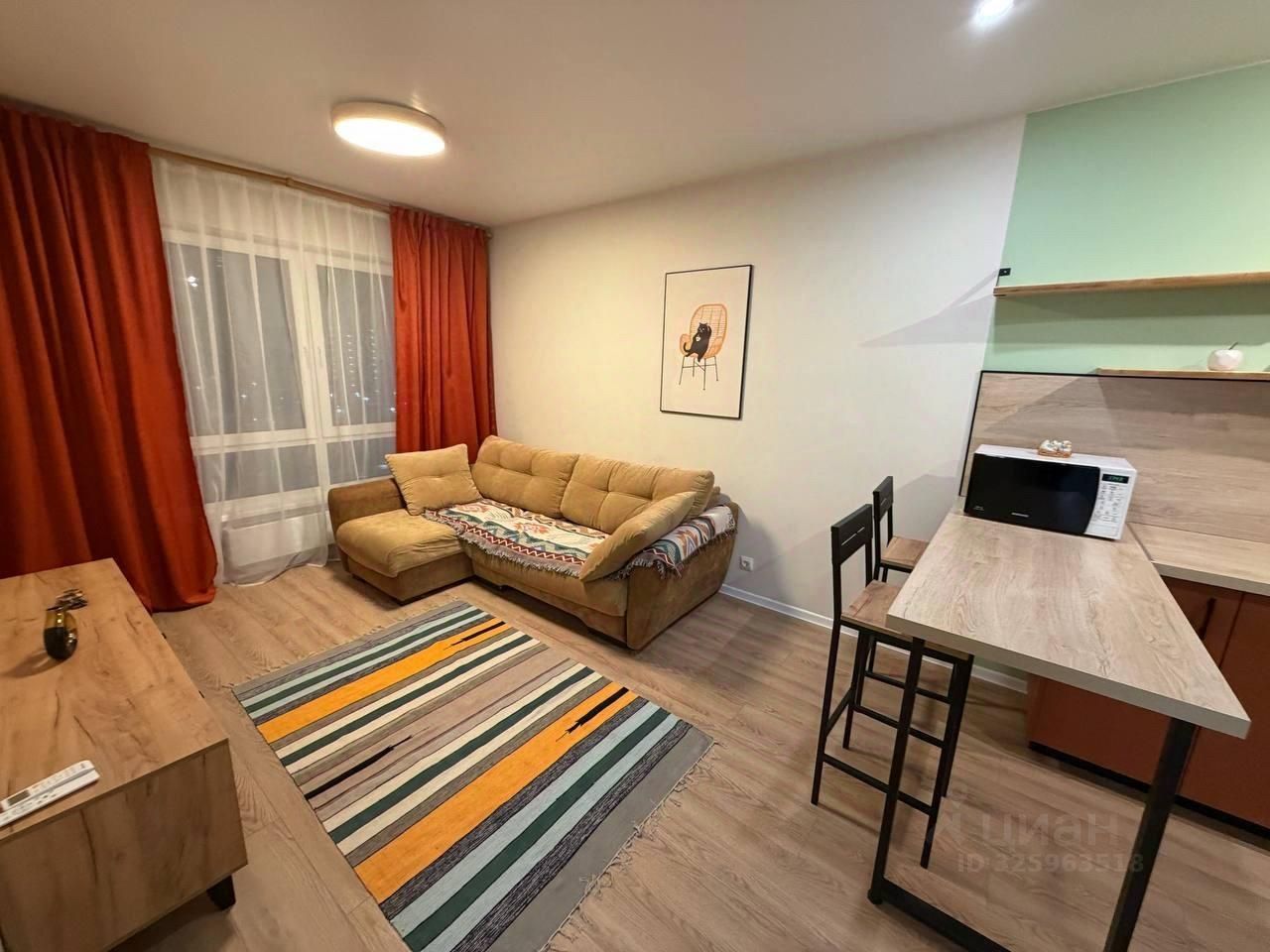 Сдается уютная однокомнатная квартира площадью 36 кв.м на 15 этаже современного 24-этажного дома. Высота потолков — 2,62 метра, поэтому в квартире светло и просторно. Окна выходят на улицу, открывая приятный вид.