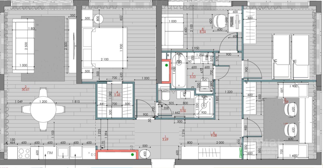 Кухня-гостиная 30м, 2 санузла.