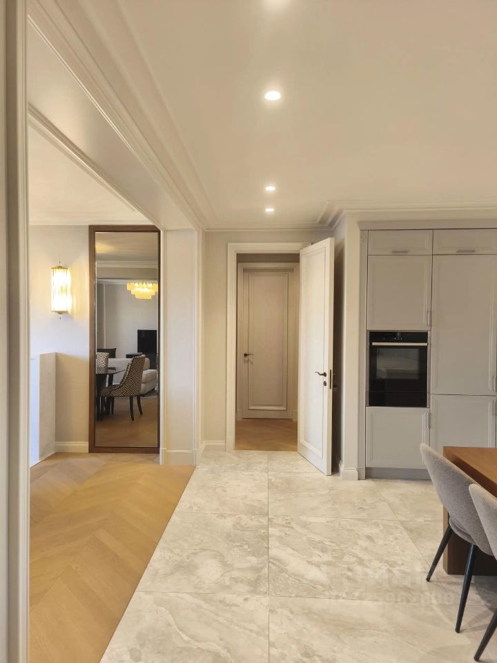 В мастер спальне для здорового сна установлено основание кровати с матрасом фирмы King Koil. В отделке были использованы материалы ведущих европейских производителей. В спальнях, гостиной, прихожей и в гардеробе корпусная мебель с отделкой из шпона дуба с индивидуальной тонировкой, изготовлена в соответствии с дизайн-проектом в едином стиле. На стенах обои из коллекции PHILLIP JEFFRIES В жилой зоне на полу уложена 3х-слойная паркетная доска, специально привезённая из Австрии. Пол в прихожей, на кухне - керамогранит Dreamy Desert (Испания), в санузлах керамогранит Dreamy Desert (Испания), Reverse Artic nat (Италия). Просторная итальянская кухня в классическом стиле станет отличным местом для кулинарных экспериментов. Установлена премиальная бытовая техника Miele, Neff. Квартира сдается со всей мебелью и техникой. Записывайтесь на просмотр в удобное для вас время, и мы с удовольствием покажем вам все ее преимущества!