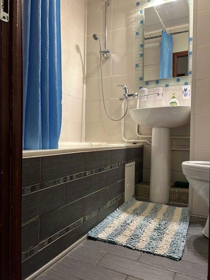 В квартире сделан косметический ремонт. Пространство обставлено необходимой мебелью: на кухне и в комнате уютно и функционально. Для вашего комфорта установлены кондиционер, холодильник, посудомоечная машина, телевизор и стиральная машина. Ванная комната оборудована ванной, а также имеется отдельный санузел. Изюминкой квартиры является балкон, где можно наслаждаться свежим воздухом.