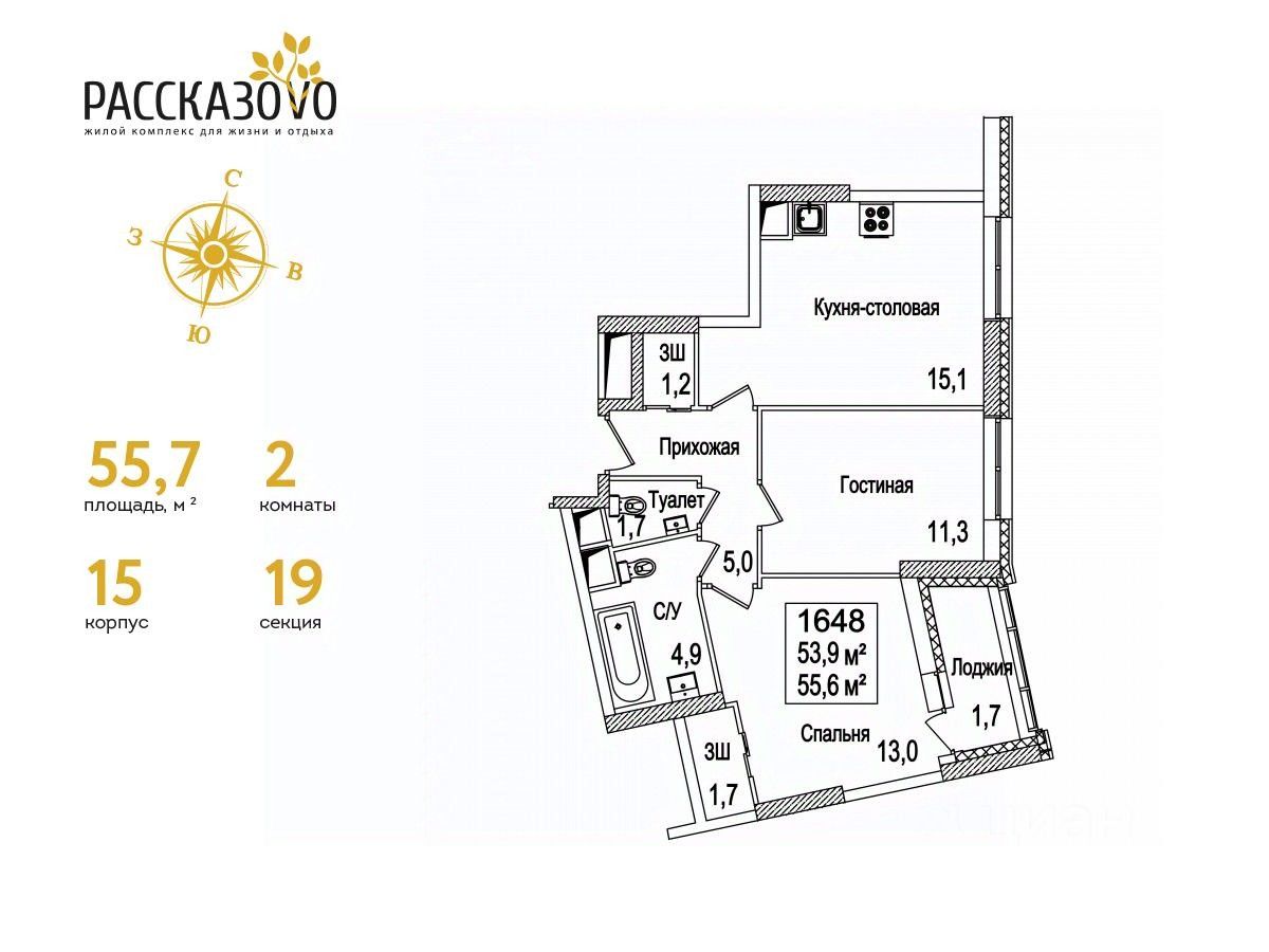 Общая площадь55,7 м2