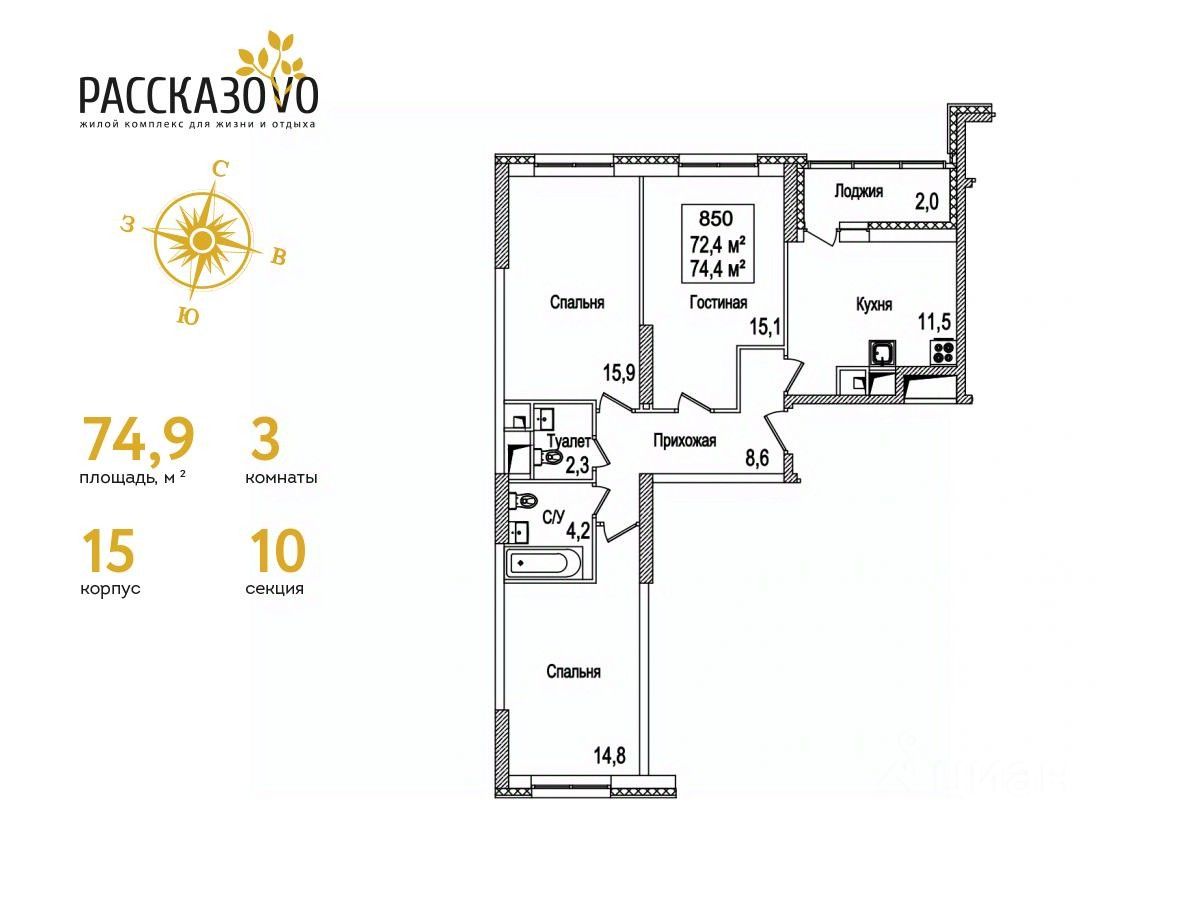 Общая площадь74,9 м2