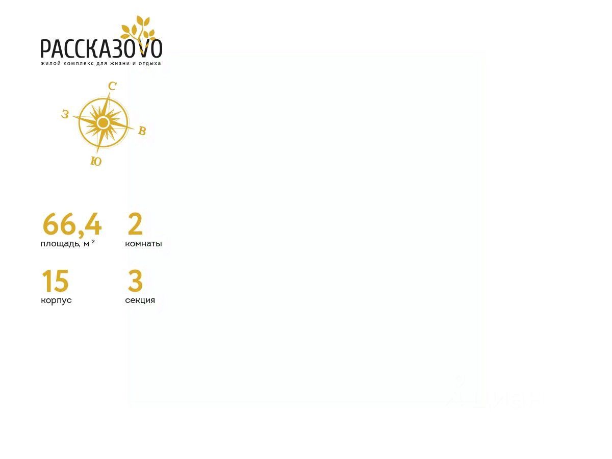 Продается 2-комнатная квартира в ЖК Рассказово на 17 этаже. Общая площадь квартиры составляет 66,4 кв.м. Квартира без отделки.